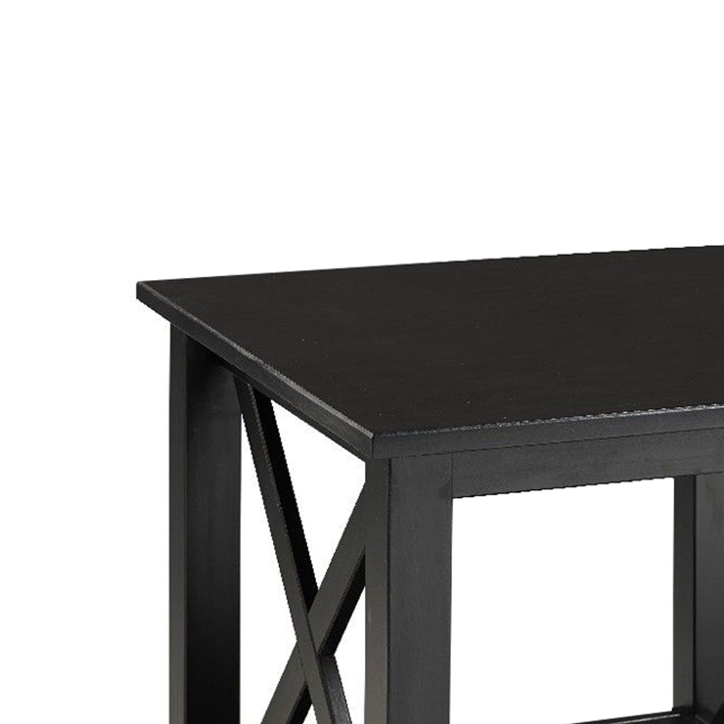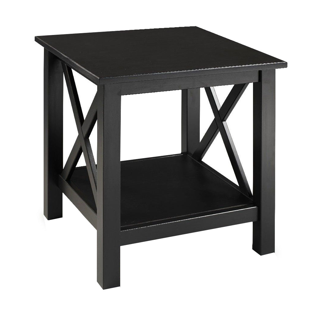 Embellish your existing Decor setting by bringing in this transitional style End Table, featuring a wide rectangular tabletop and offers spacious storage with its open bottom shelf. Incorporated with criss cross side panel, it is constructed sturdily from solid wood frame.