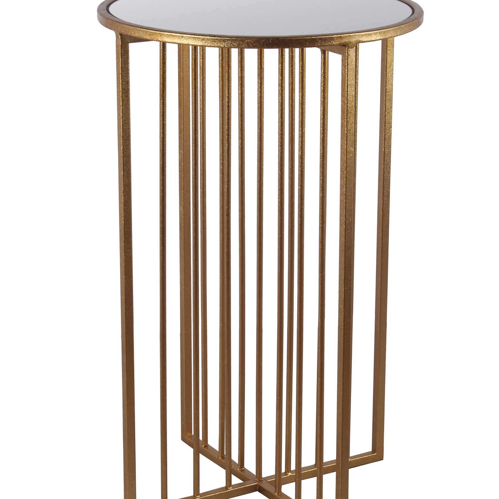 Benzara BM216924 Round Top Metal Accent Table with Slatted X Shape Base, Gold and Silver