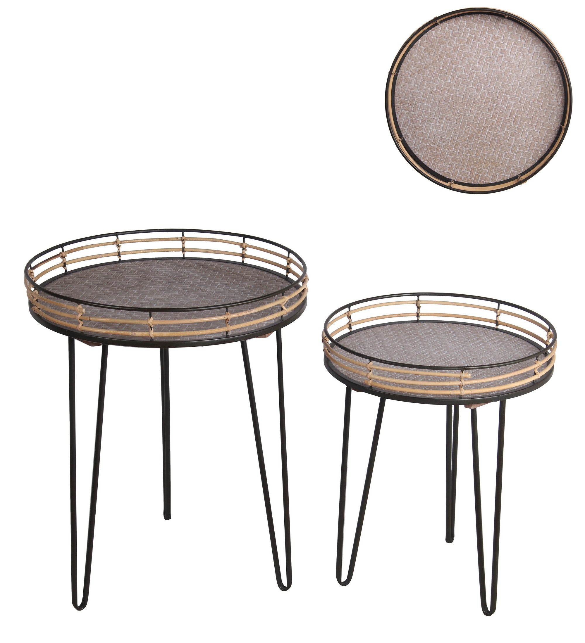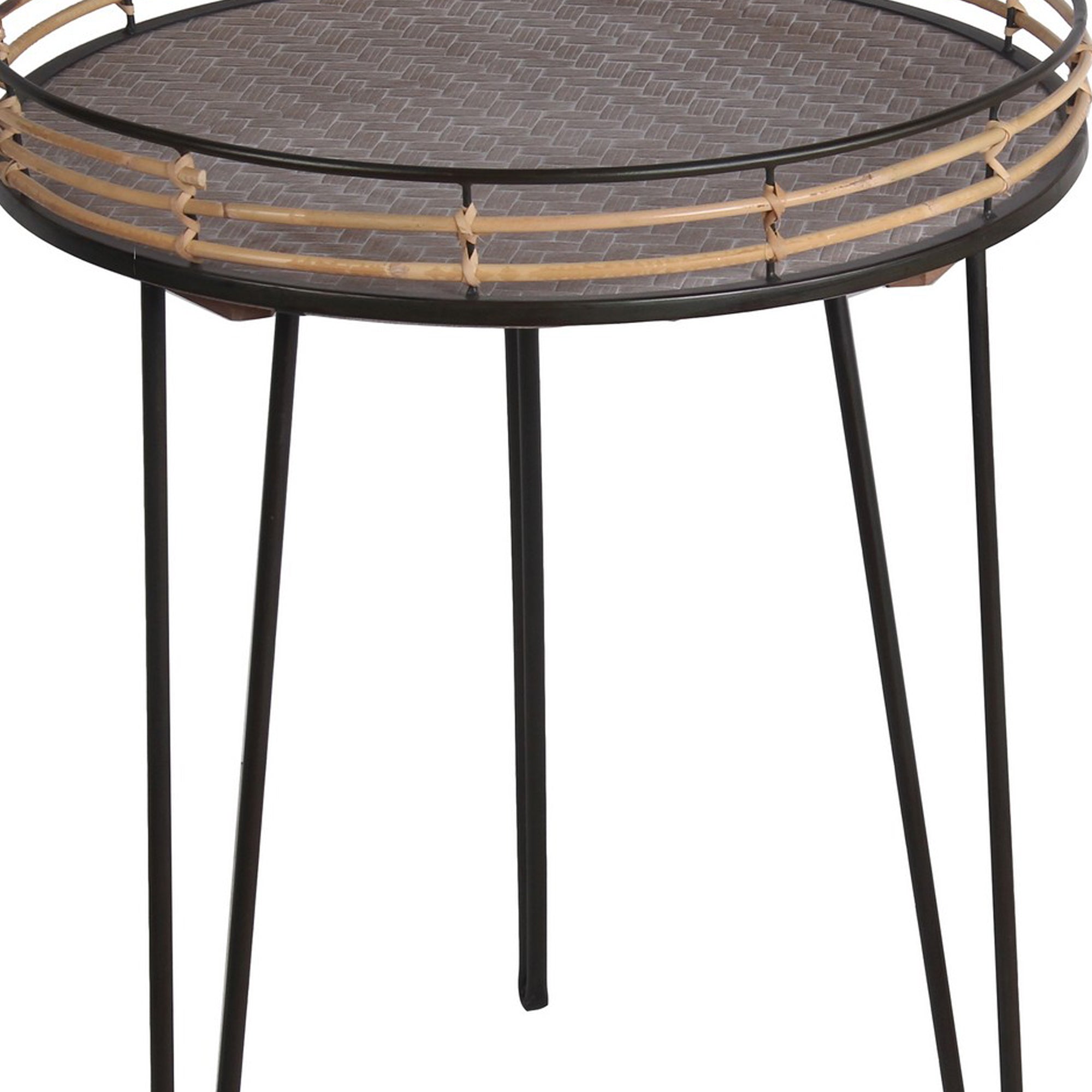 Benzara BM217001 Rail Top Metal Accent Table with Hairpin Legs, Set of 2, Black and Brown
