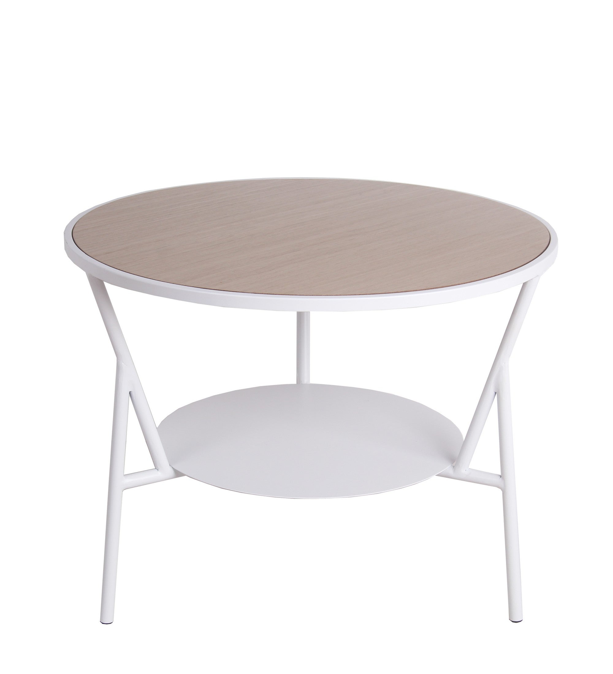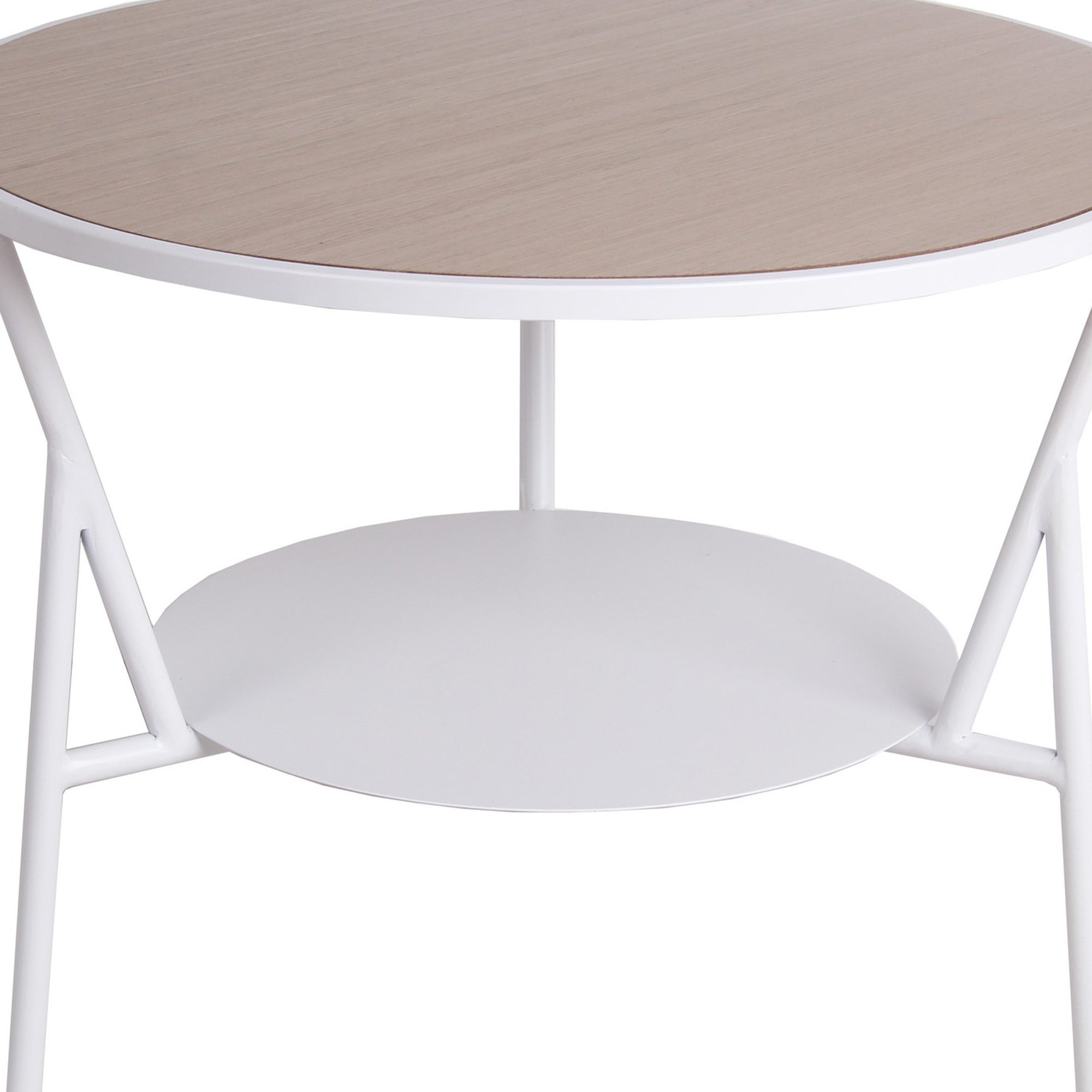 Benzara BM217100 Industrial Round Accent Table with Metal Tubular Base,Small, White and Brown