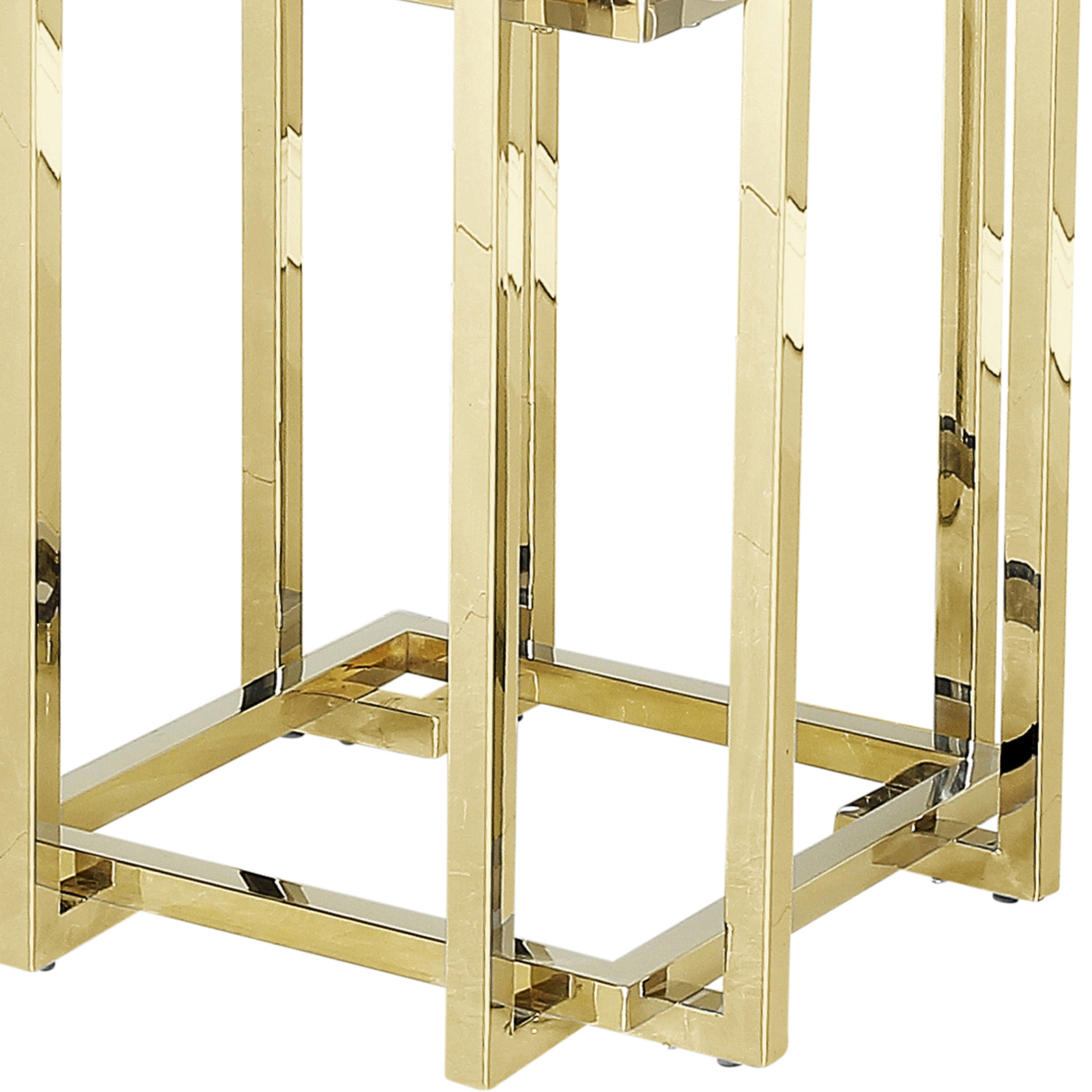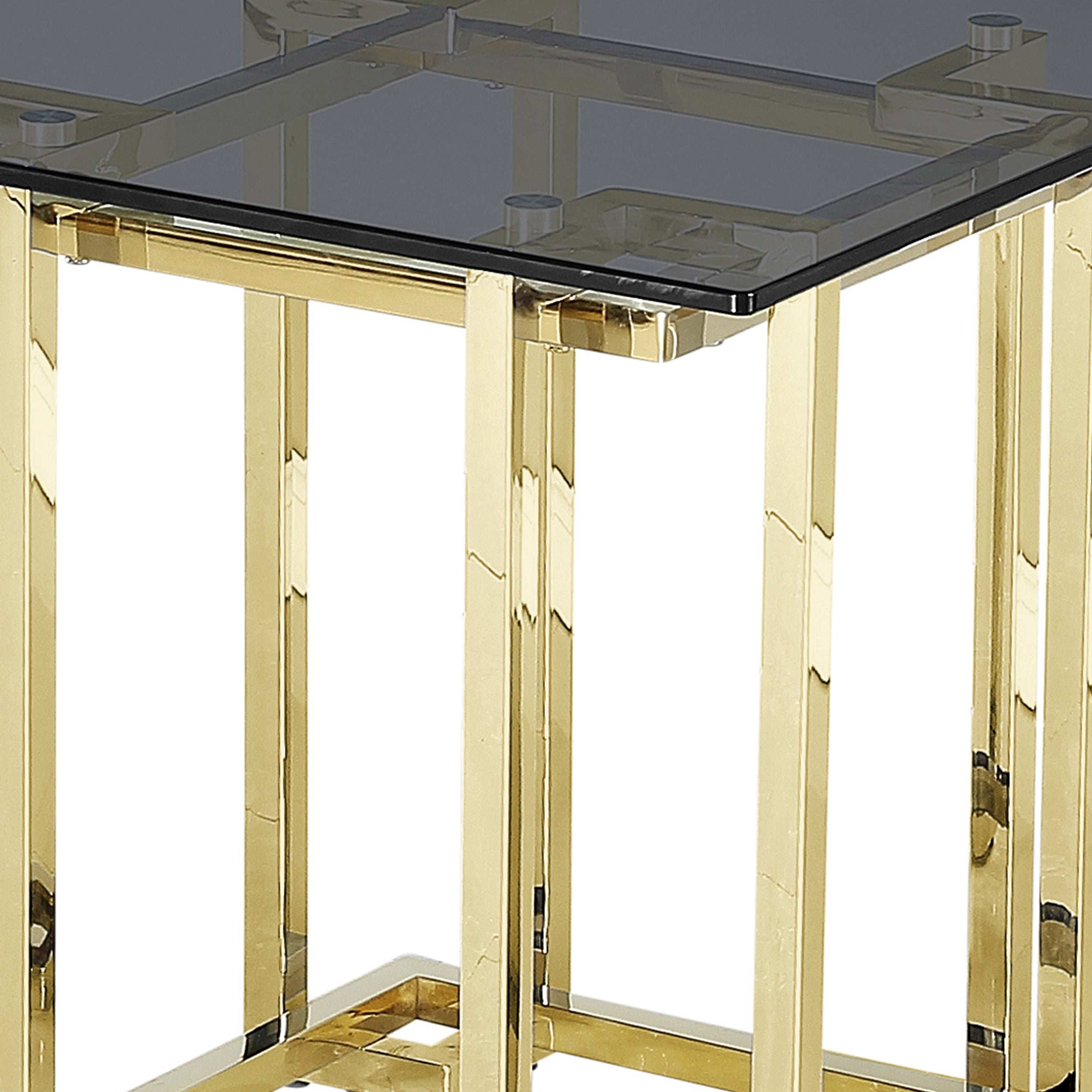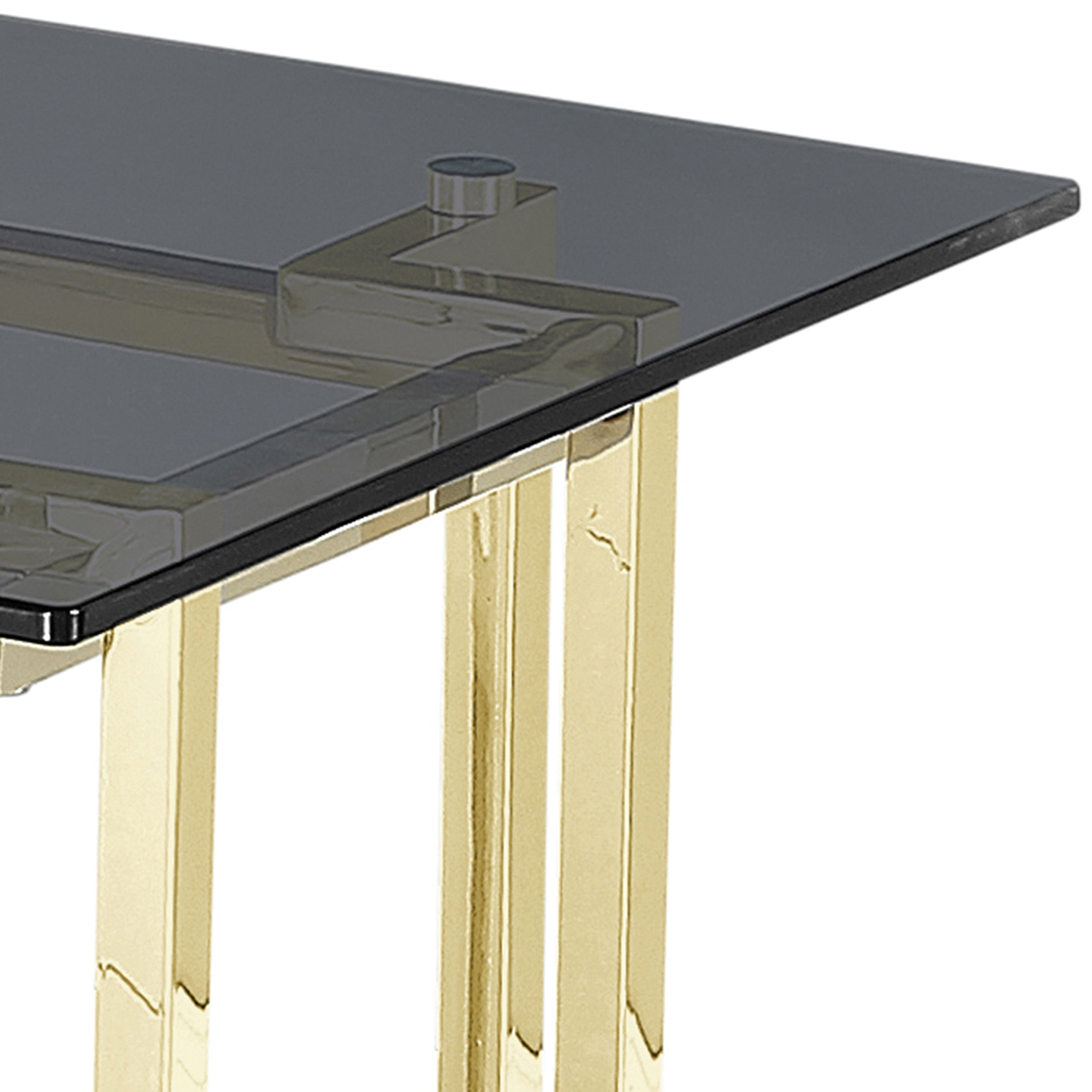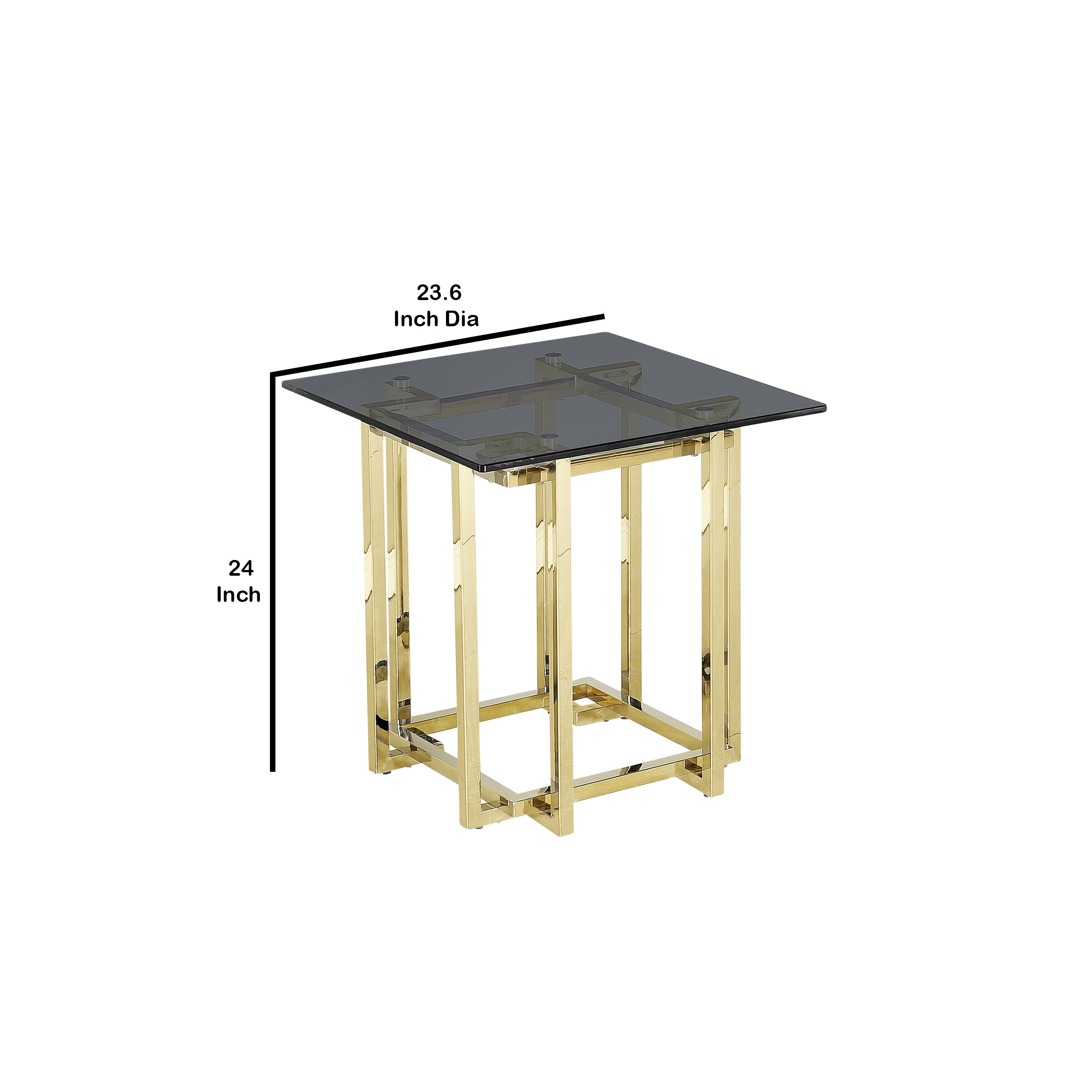 Benzara BM217143 Tempered Glass Top Accent Table with Metal Frame, Gray and Gold