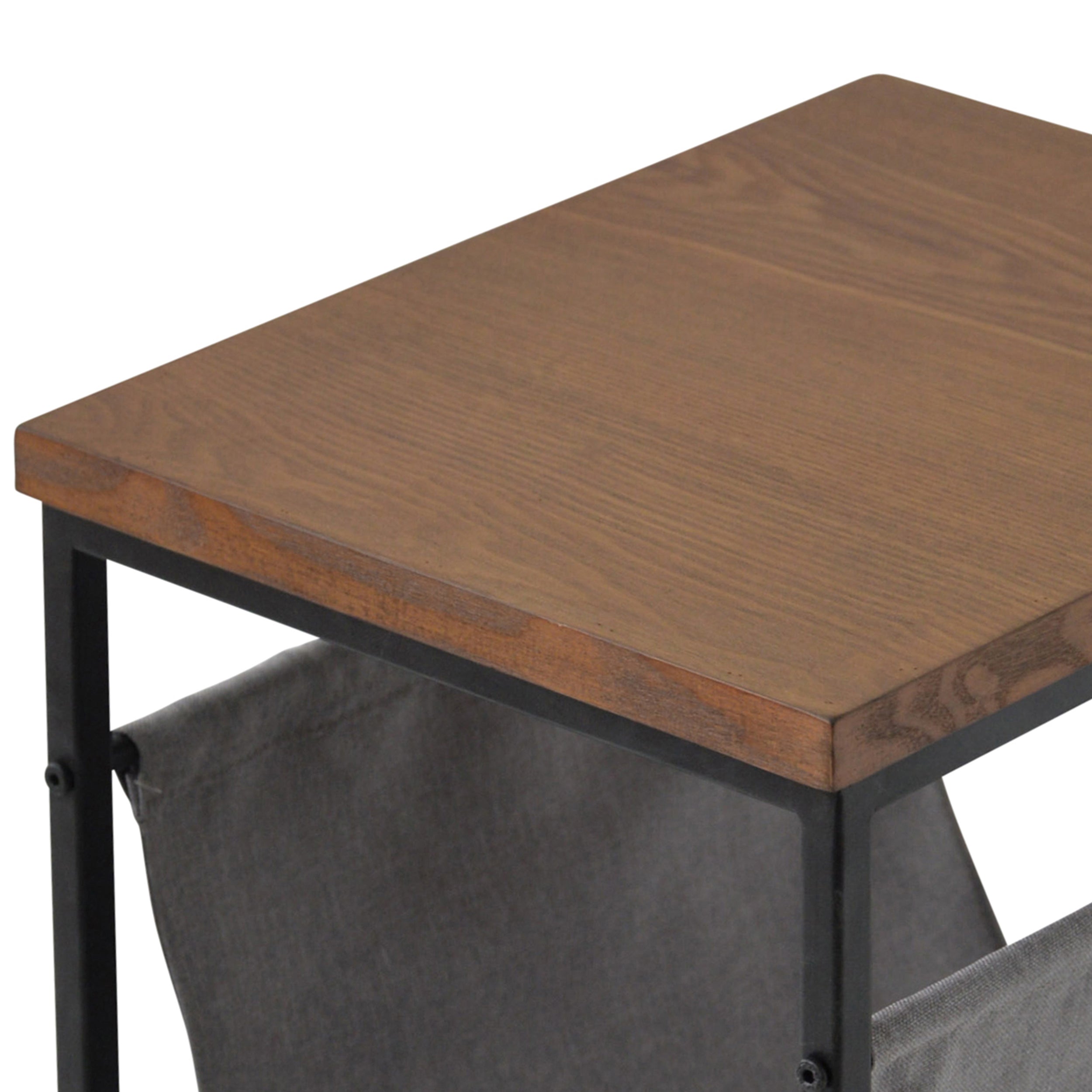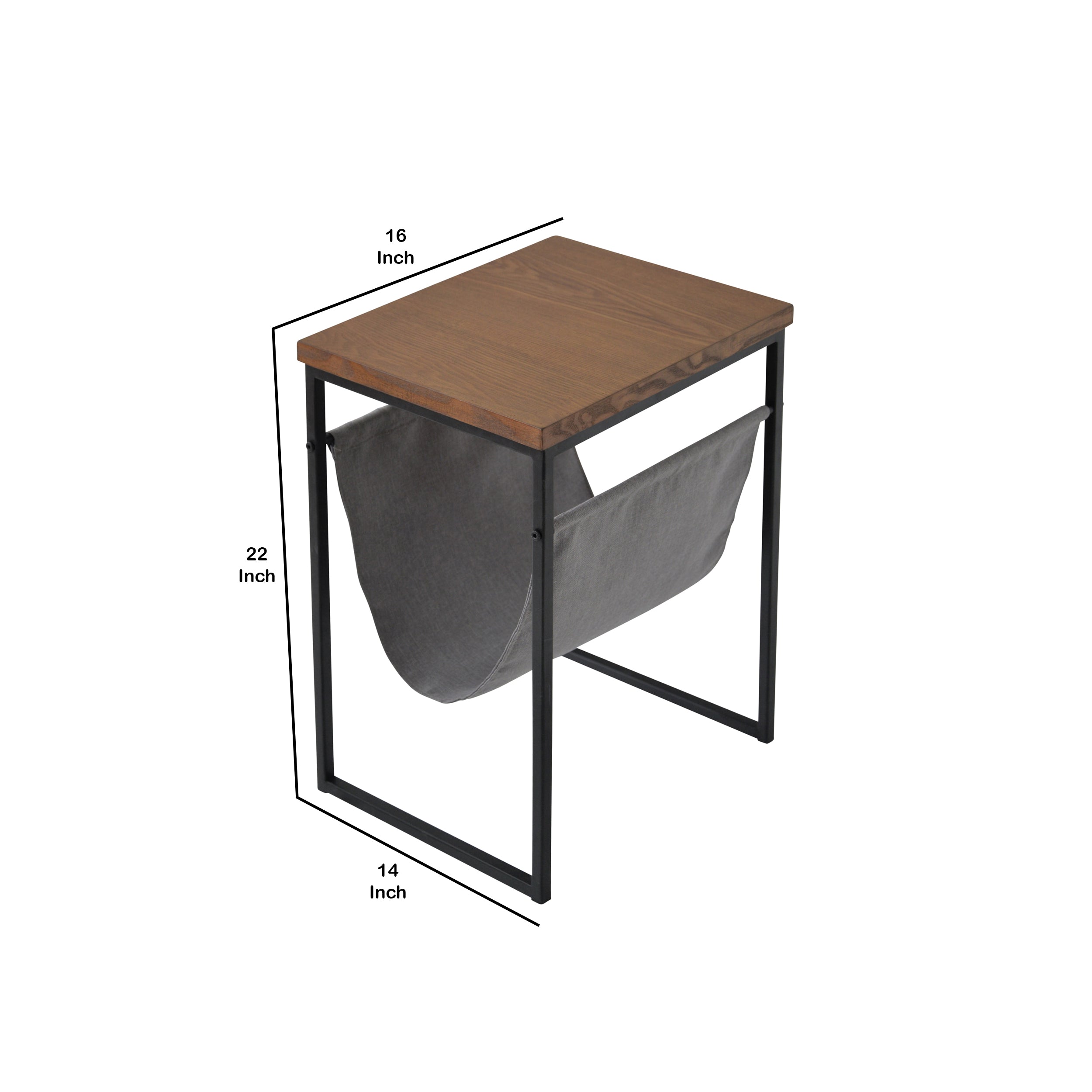 Benzara BM217152 Wood and Metal Frame Accent Table with Fabric Pouch, Brown and Black