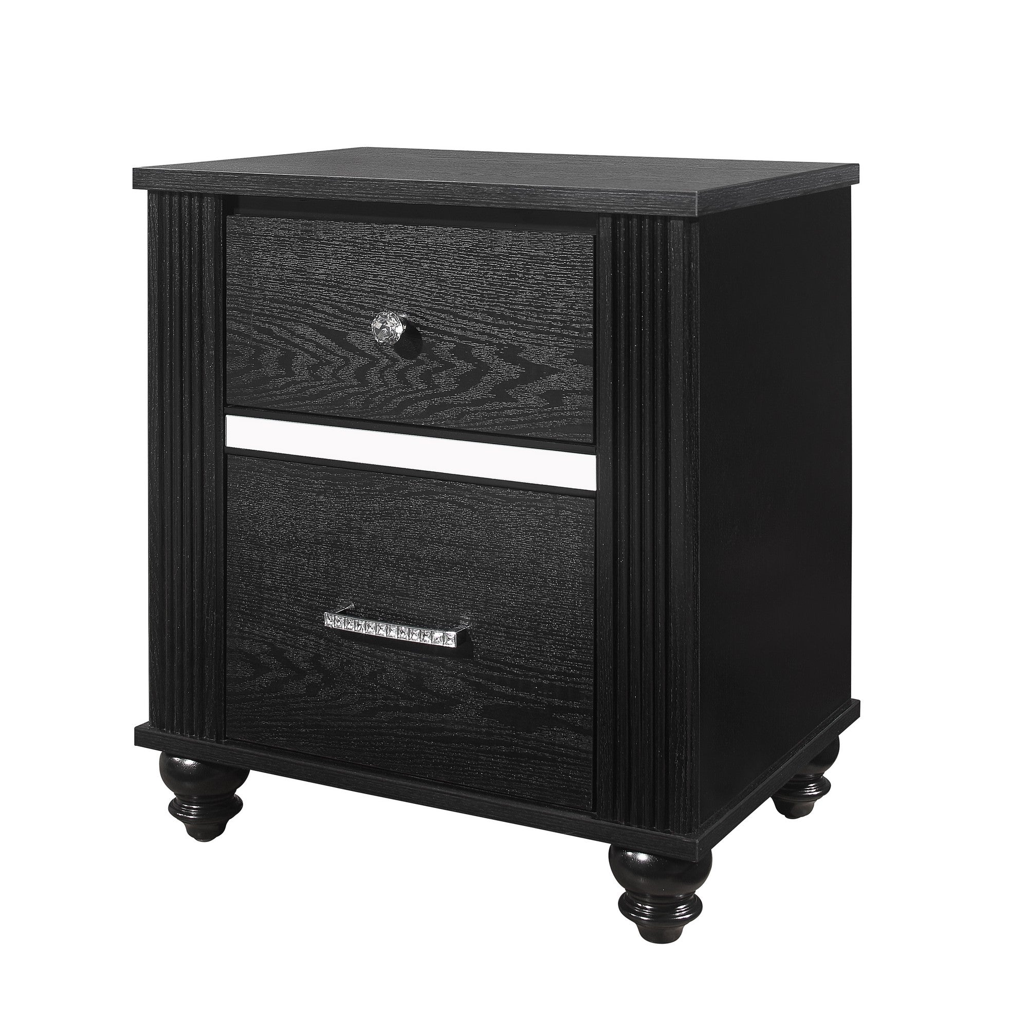 Benzara BM221575 Wooden Nightstand with 2 Spacious Storage Drawers, Black