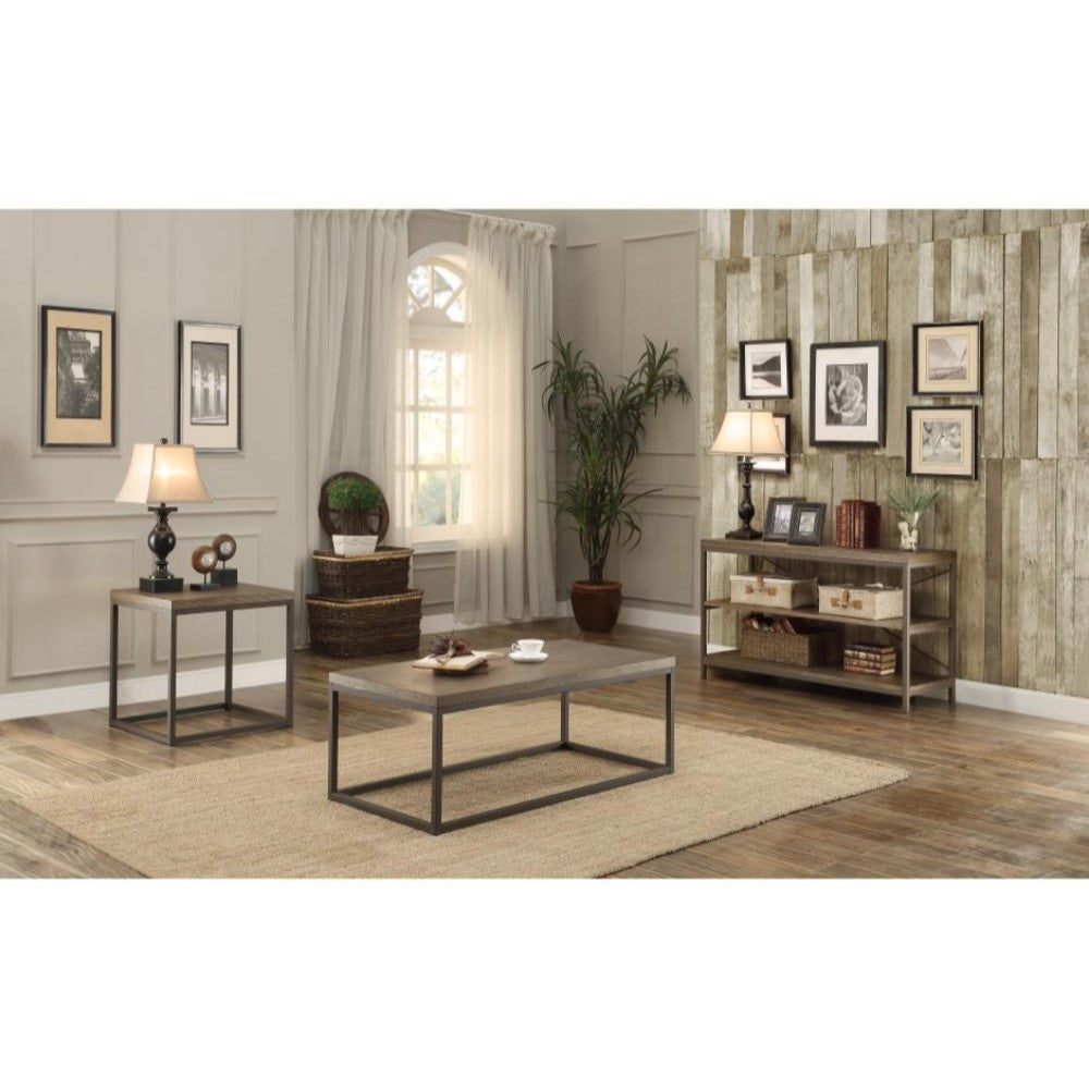 Benzara Cocktail Table In Metal Frame With Grey Weathered Wood, Grey