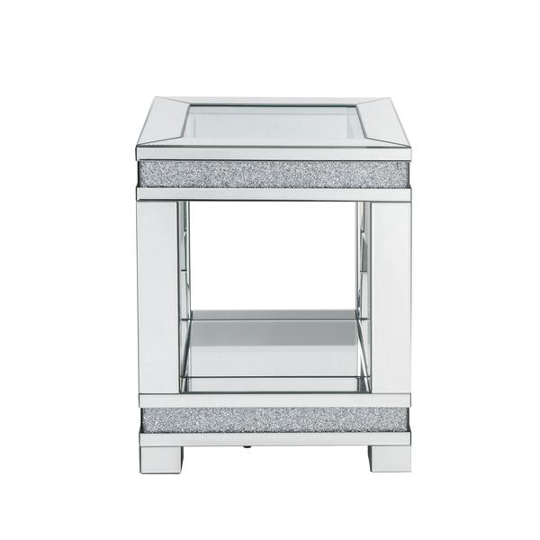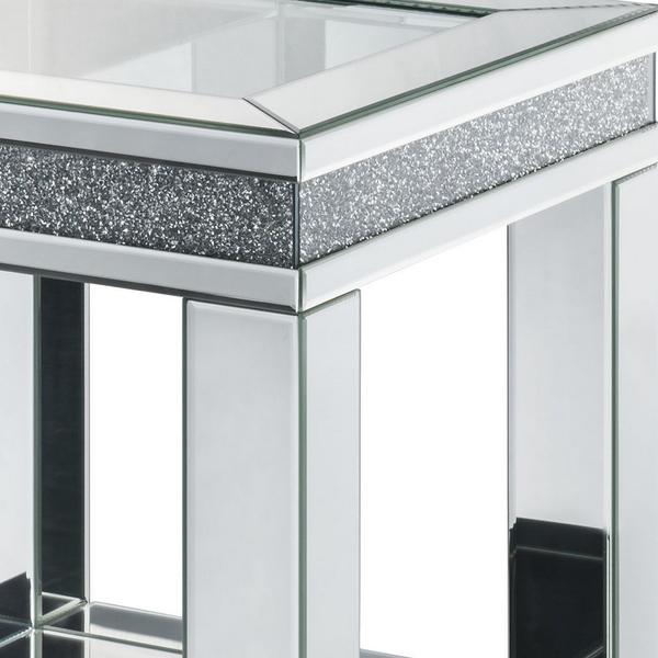 Catch the attention of your guests and visitors at your home by bringing in this beautiful end table. It features a stylish body covered with mirror panels and showcases faux gemstone accents that boosts up its charm. It incorporates a mirrored open bottom shelf, providing additional storage.