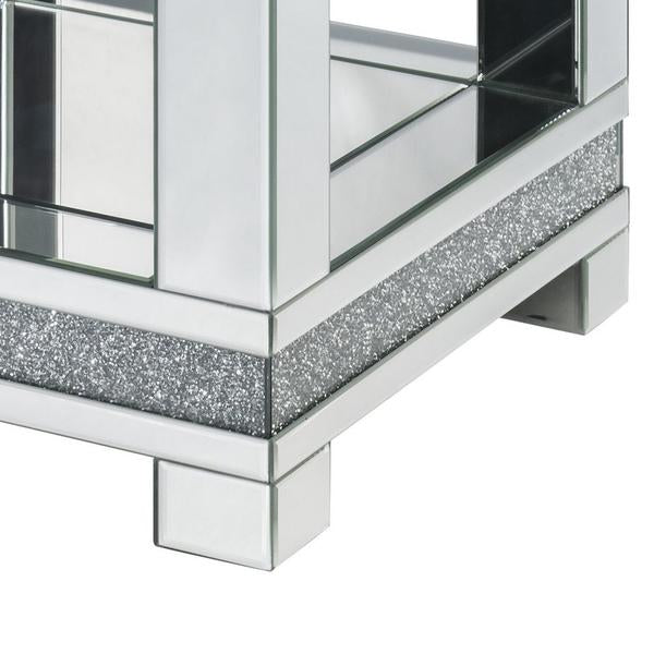 Benzara End Table with Faux Gemstone Accents and Open Bottom Mirrored Shelf, Silver