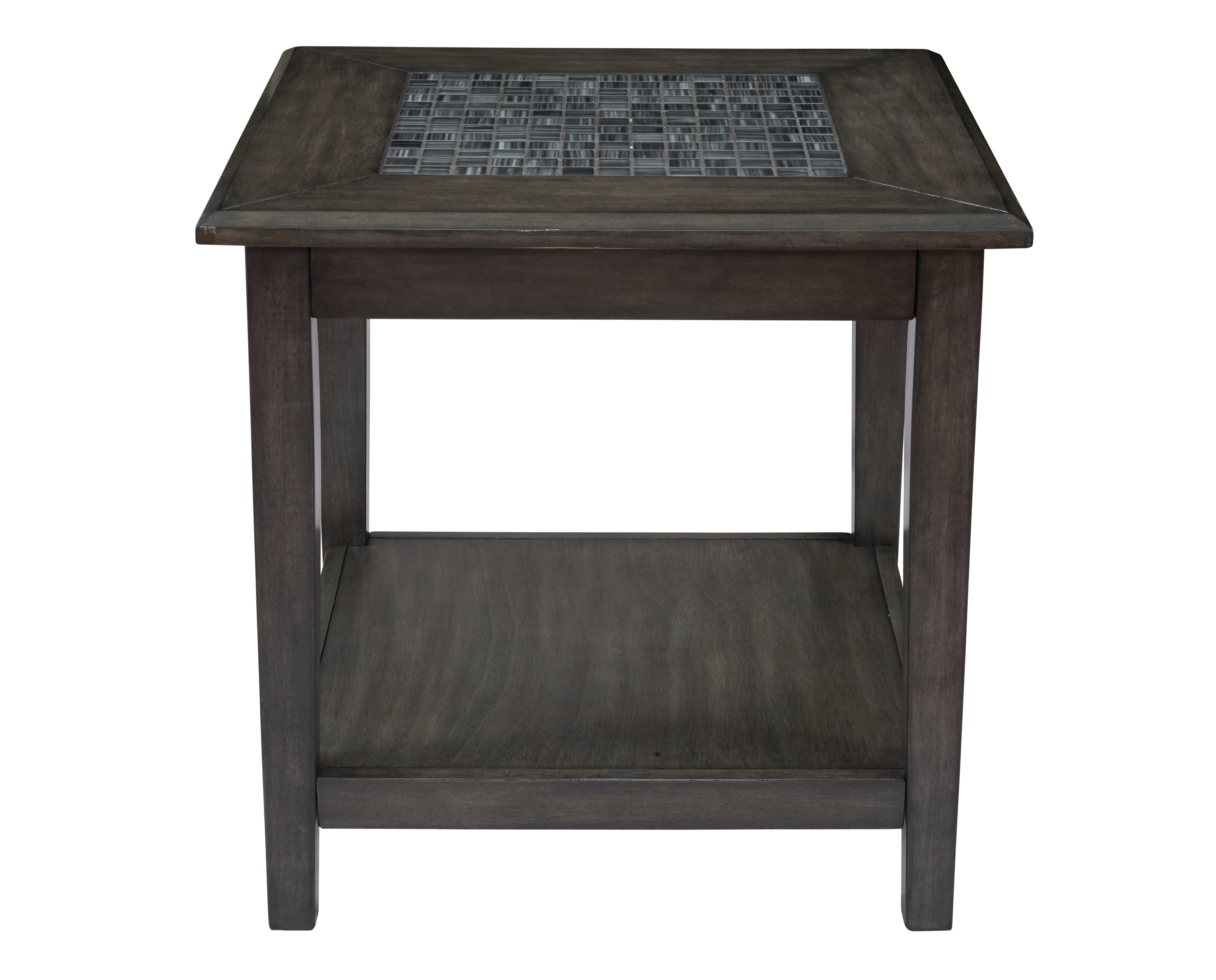 This end table features a contemporary design with a casual style to give your home an elegant look. Constructed of solid hardwood and stone marble, this end table features an unmatched design with a sturdy look. The table top consists mosaic tile inlay that creates a real beautiful contrast to the dark gray finish wood. The flat table top can be used to keep table lamps, decorative vases, photo frames, and more to serve its purpose to the most. Use this end table with any color or theme furniture to complement the setting. Dimensions: 24X24X24