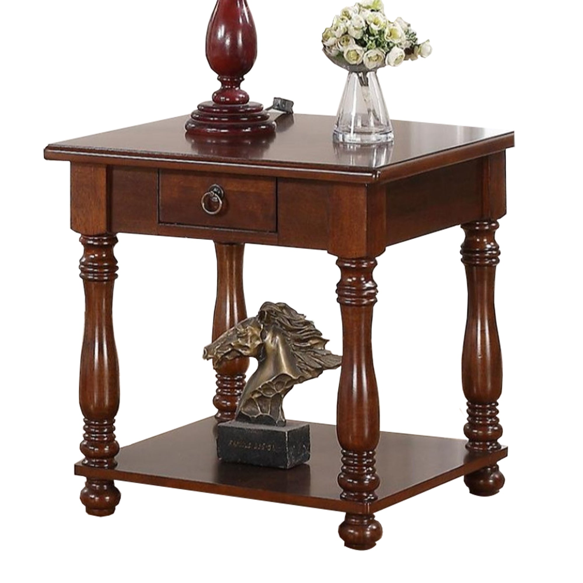 Modeled perfectly for your transitional interiors, this End Table will make a classic statement out of its style and appeal. Crafted from rubber wood, MDF and plywood, the table features subtle brown finish. It does not include any other featured product other than a End Table.