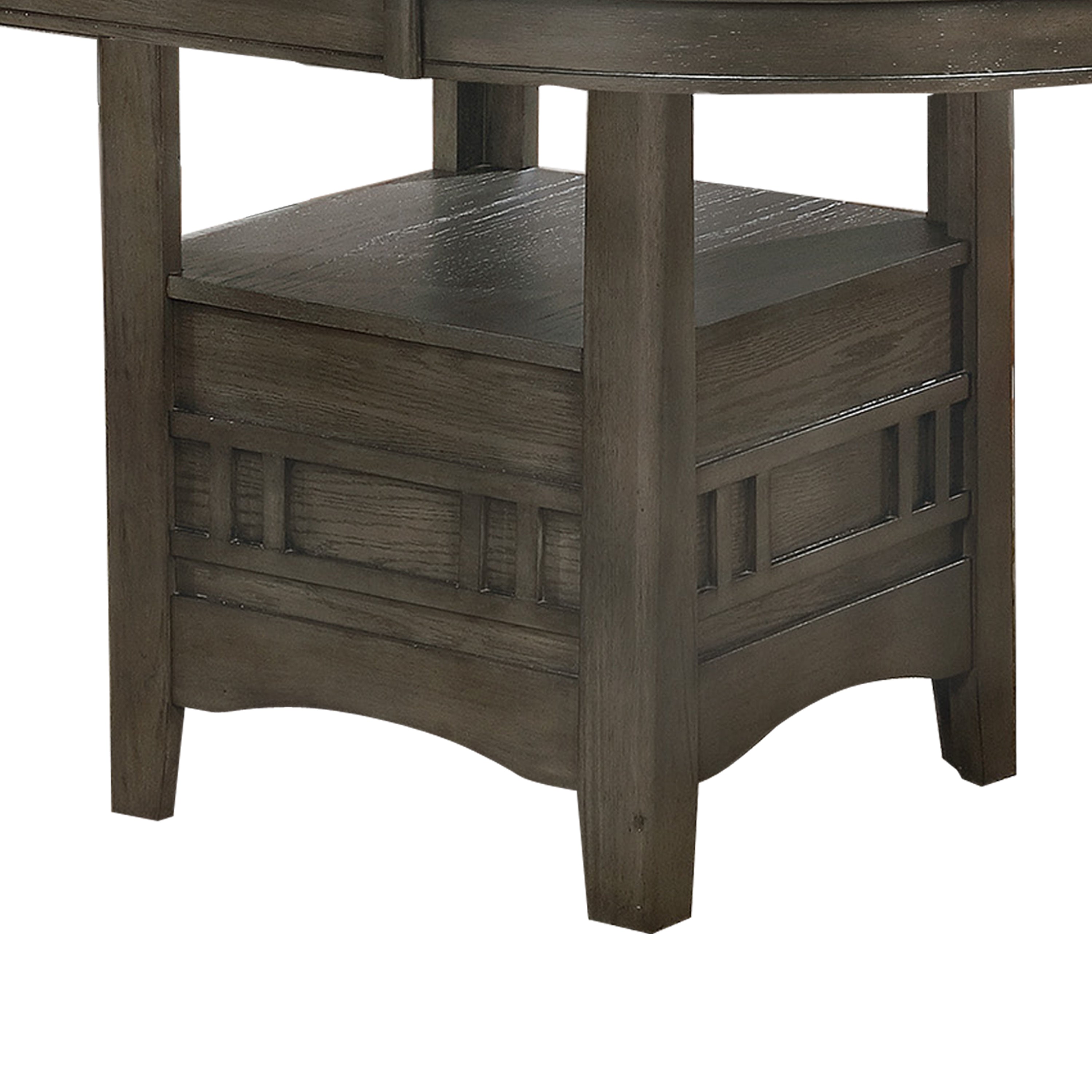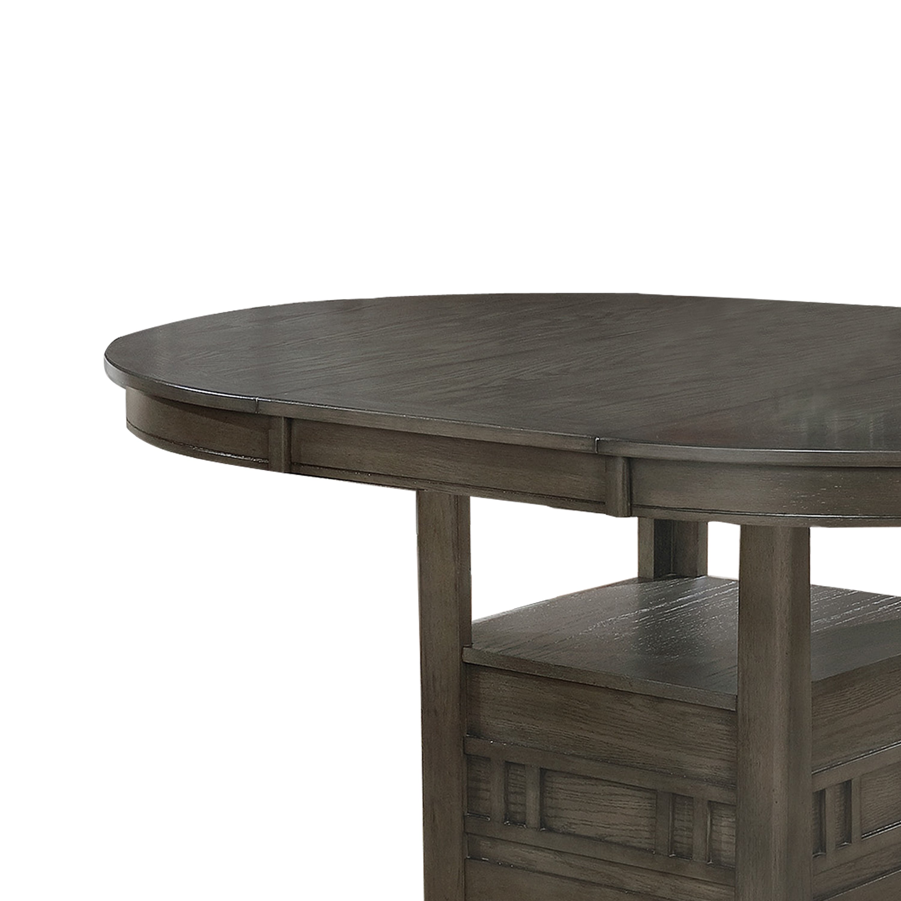 Benzara Extendable Round Wooden Dining Table with Open Bottom Shelf, Gray