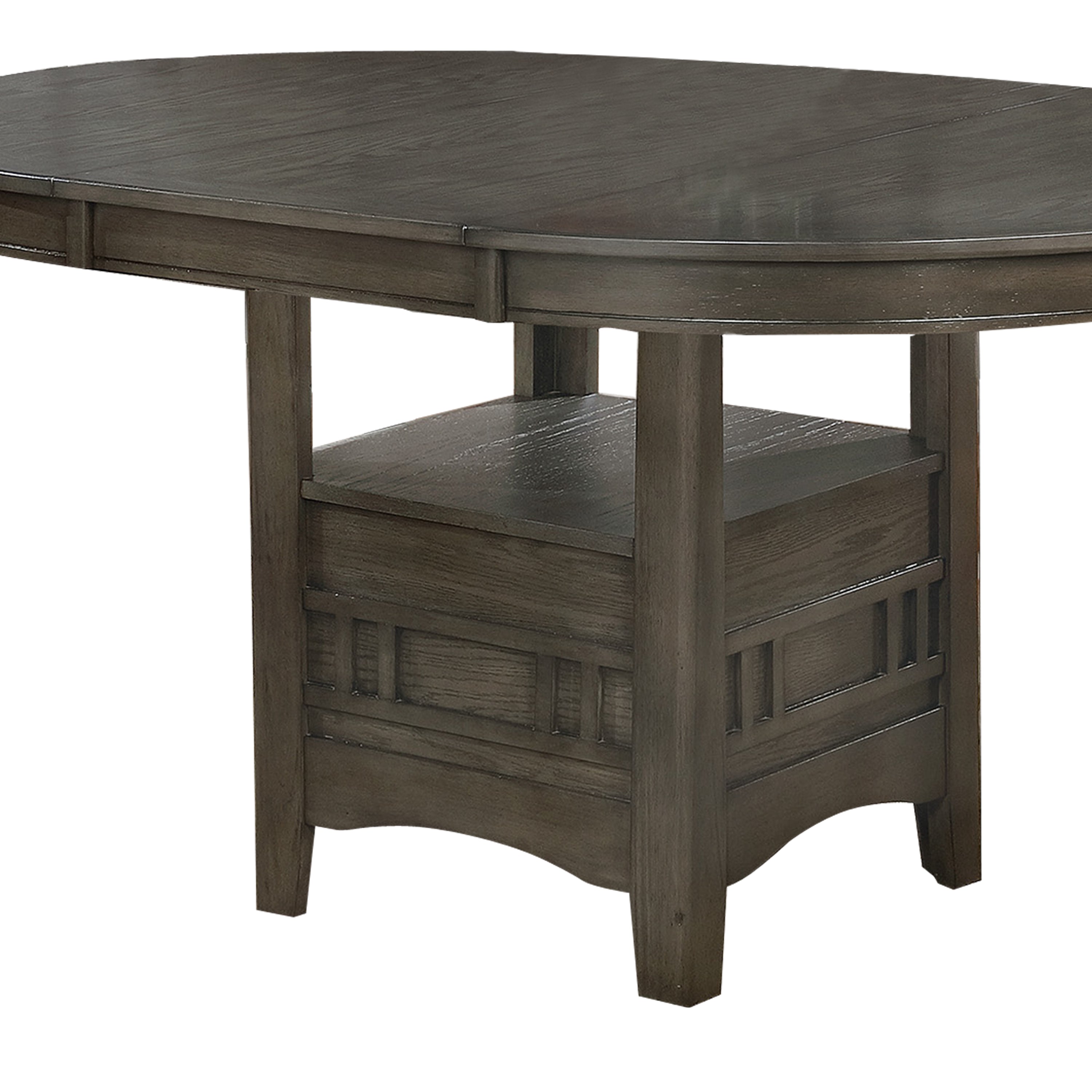 Enhance your dining space with the setting up of this Dining Bench. Featuring a sturdy wooden construction in a gray finish, the bench incorporates an extendable leaf and an open bottom shelf. The pedestal base at the bottom showcases molding details and arched apron that adds an interesting character to its design.