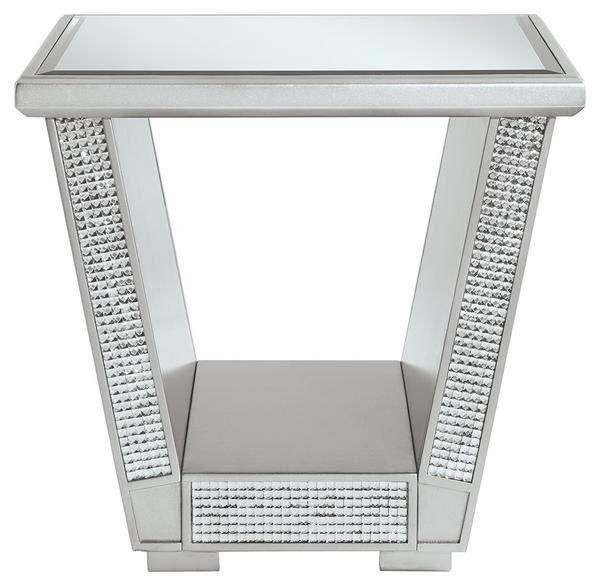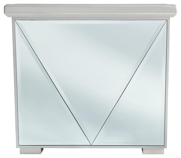 Benzara Geometric Wedge Design Square End Table with Mirror Panels, Silver