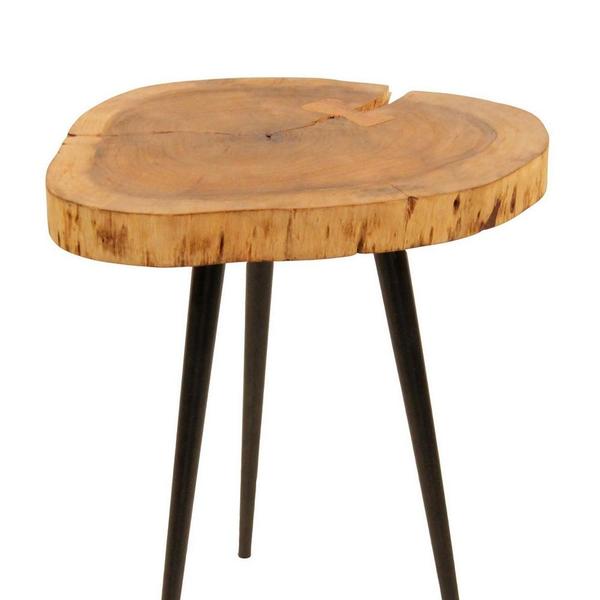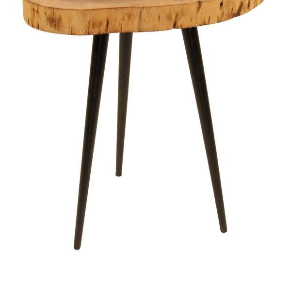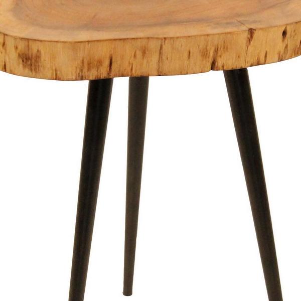Benzara Live Edge Wooden Side Table with Metal Tripod Legs, Brown and Black