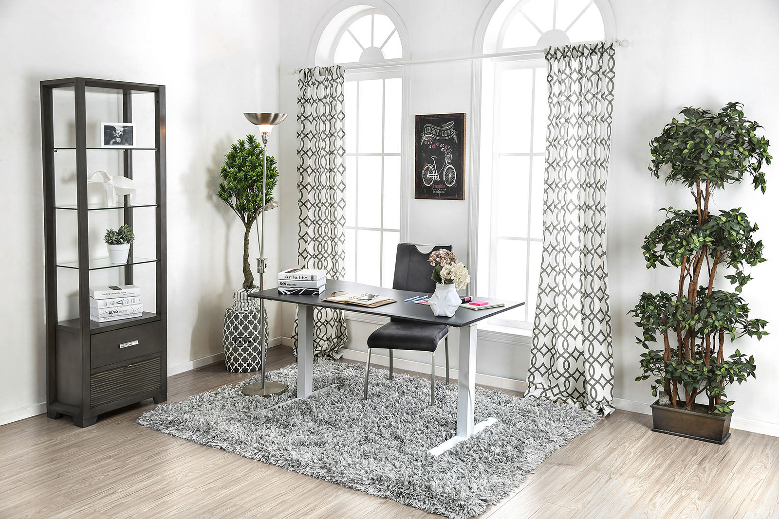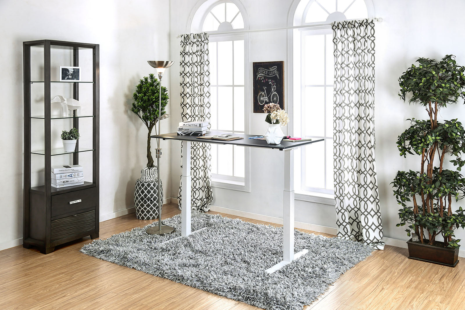 Benzara Minimalist Metallic Desk with Height Adjustable Function, Large, White & Black