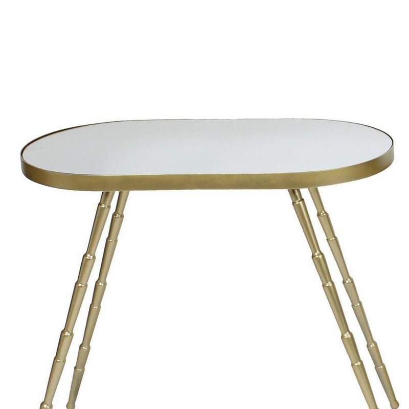 Benzara Obround Mirror Top Accent Table with Angled Metal Legs, Set of 2, Gold
