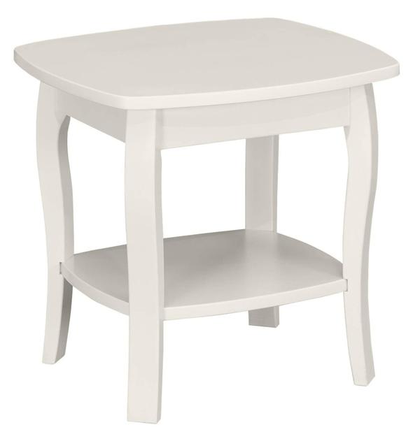 Benzara Rectangular Wooden End Table with Bottom Shelf and Sabre Legs, White