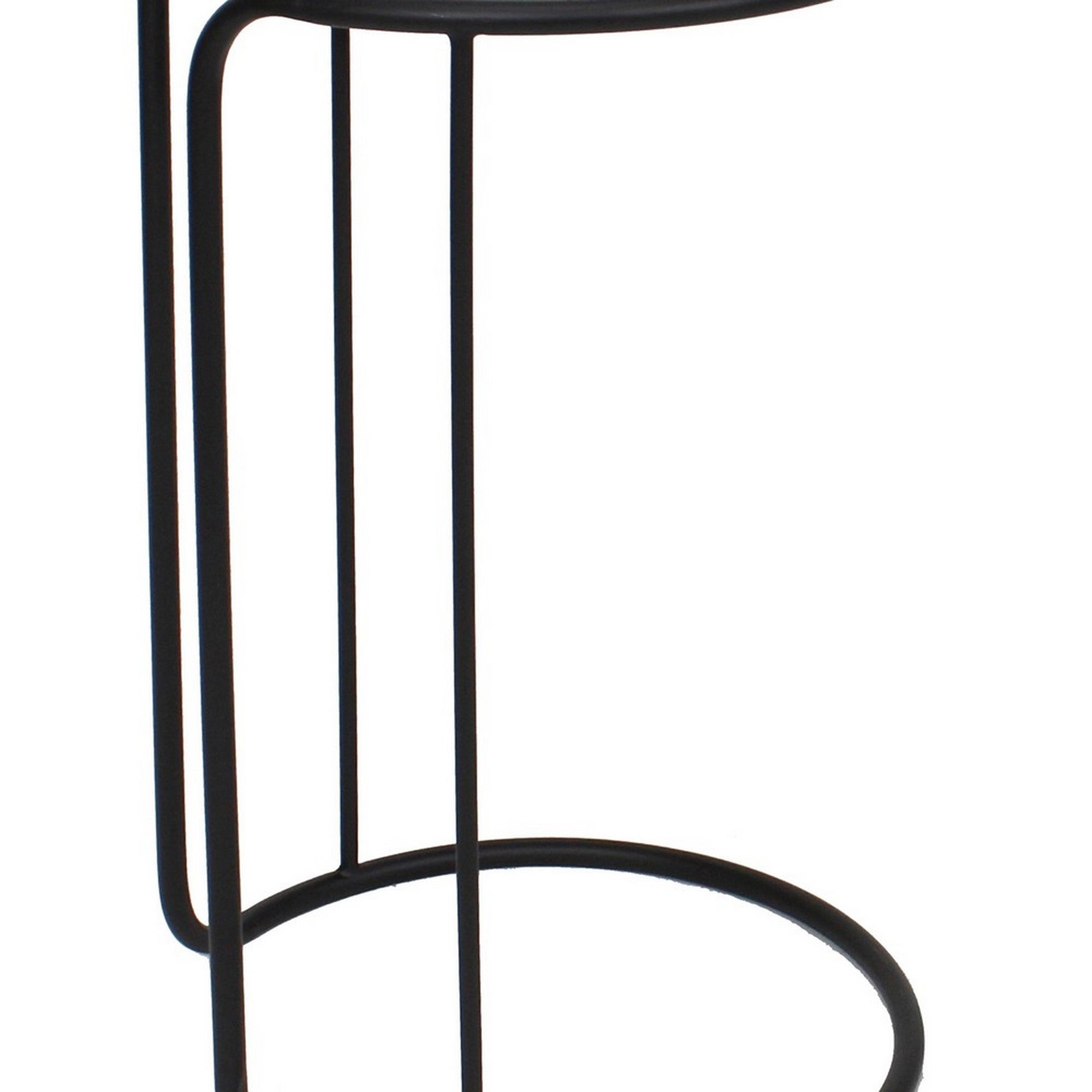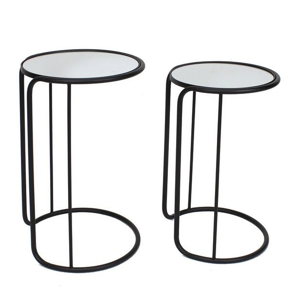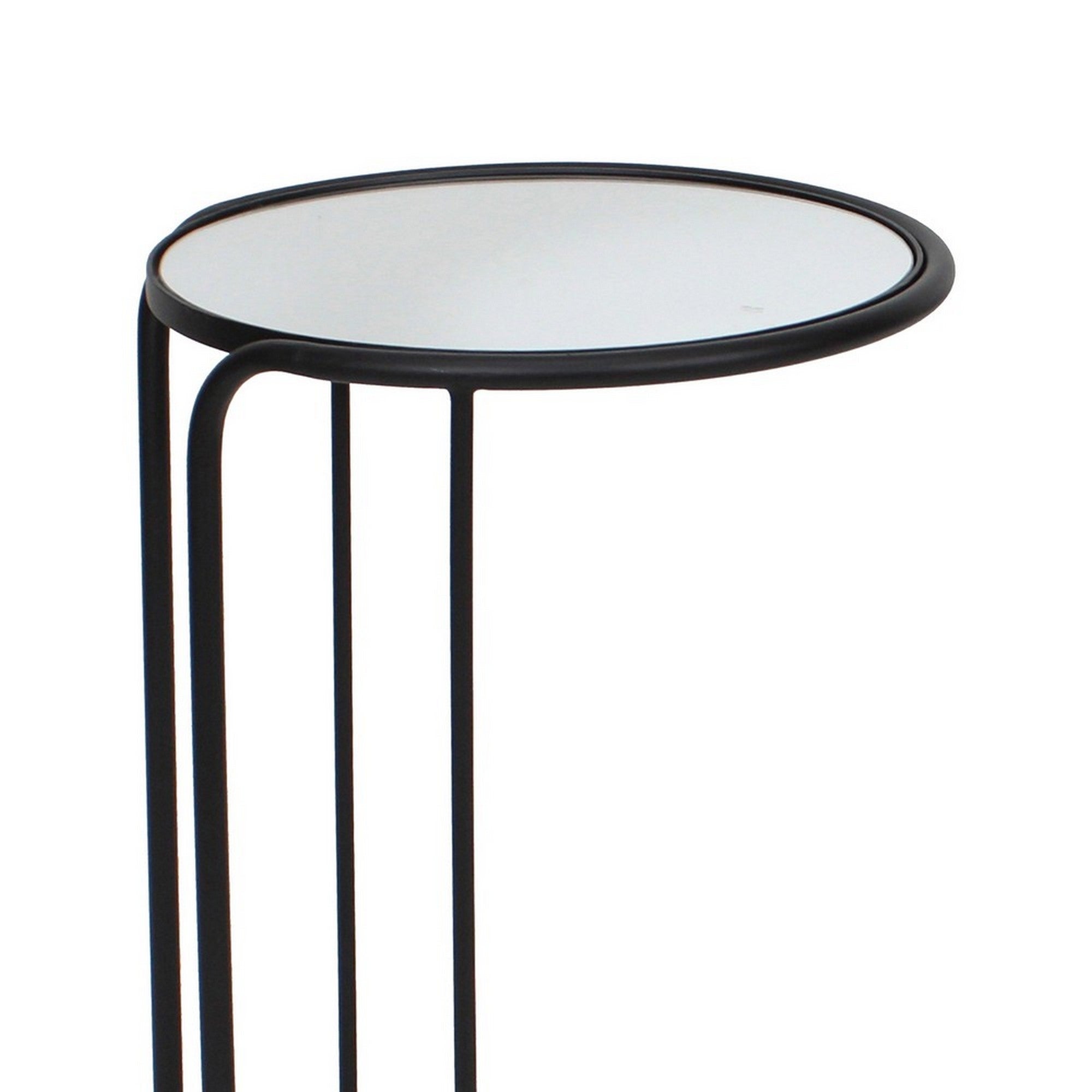 Benzara Round Mirror Top Accent Tables with Tubular Frame, Set of 2, Black