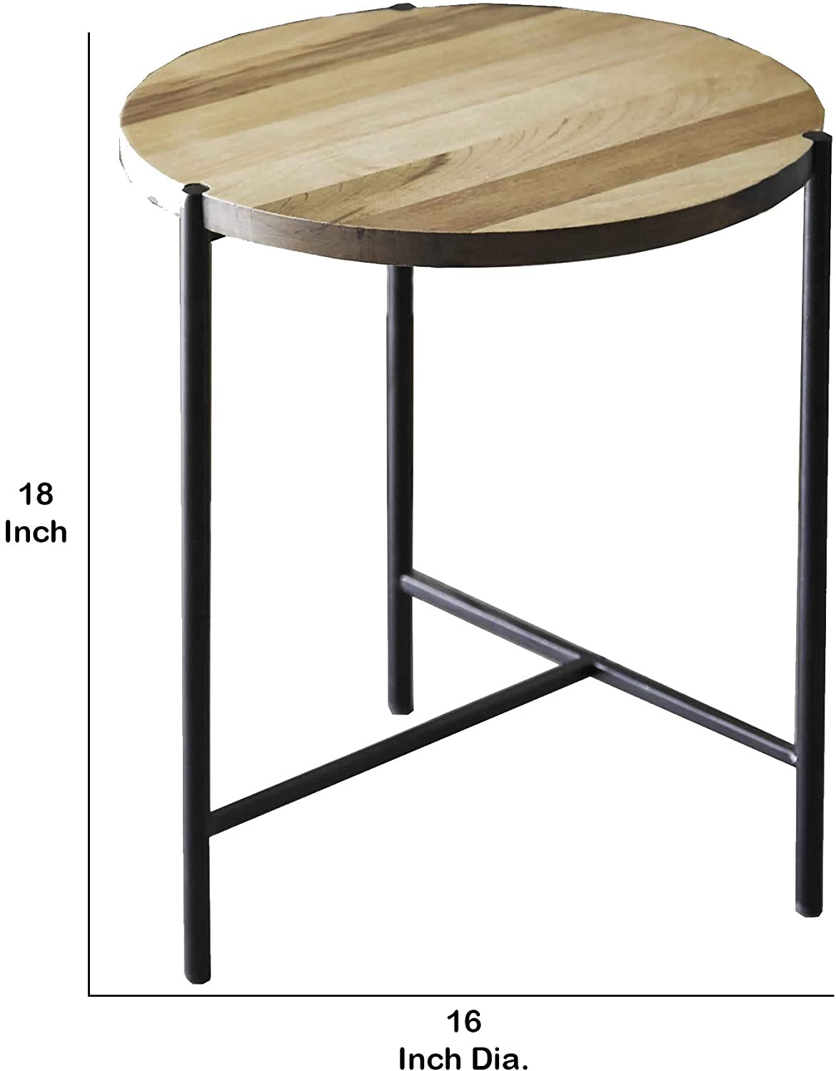 Benzara Round Wood and Metal Frame End Table with Tubular Legs, Brown and Black