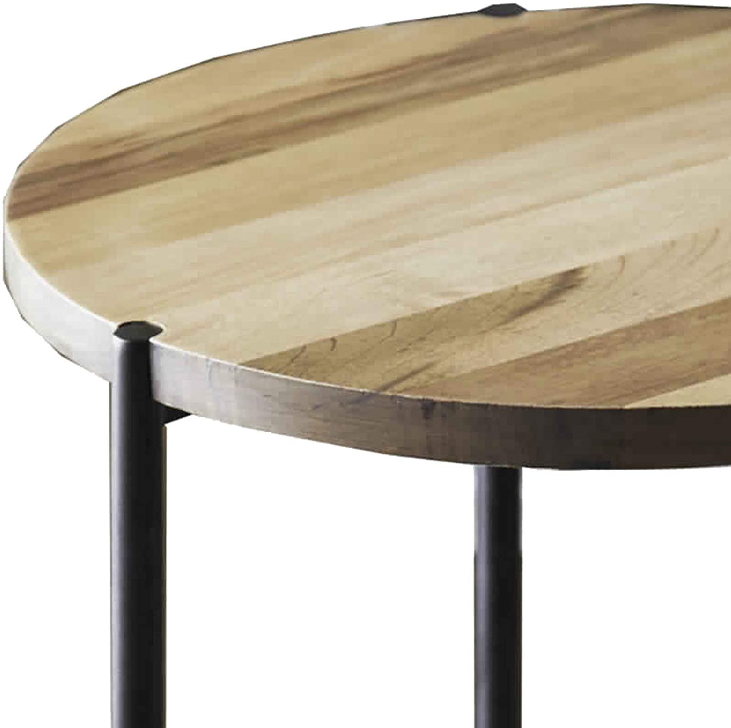 Round Wood and Metal Frame End Table with Tubular Legs Only at Uber Bazaar