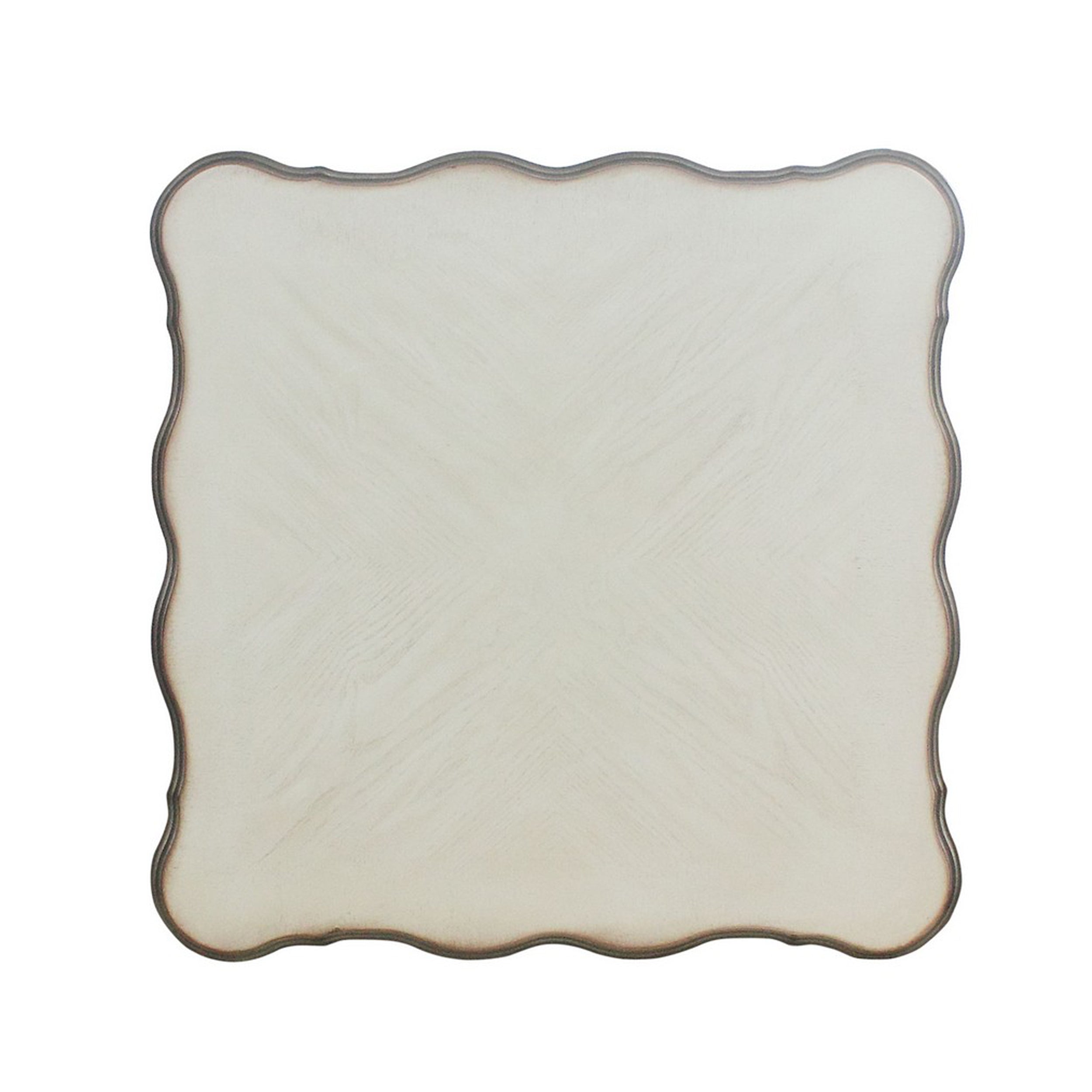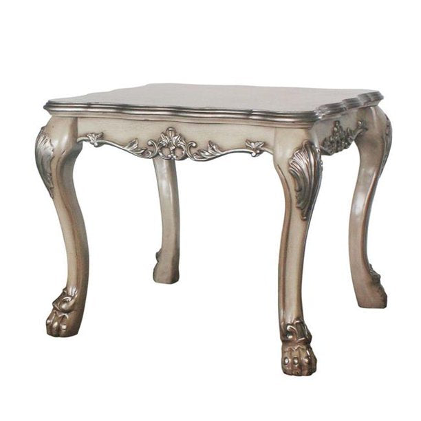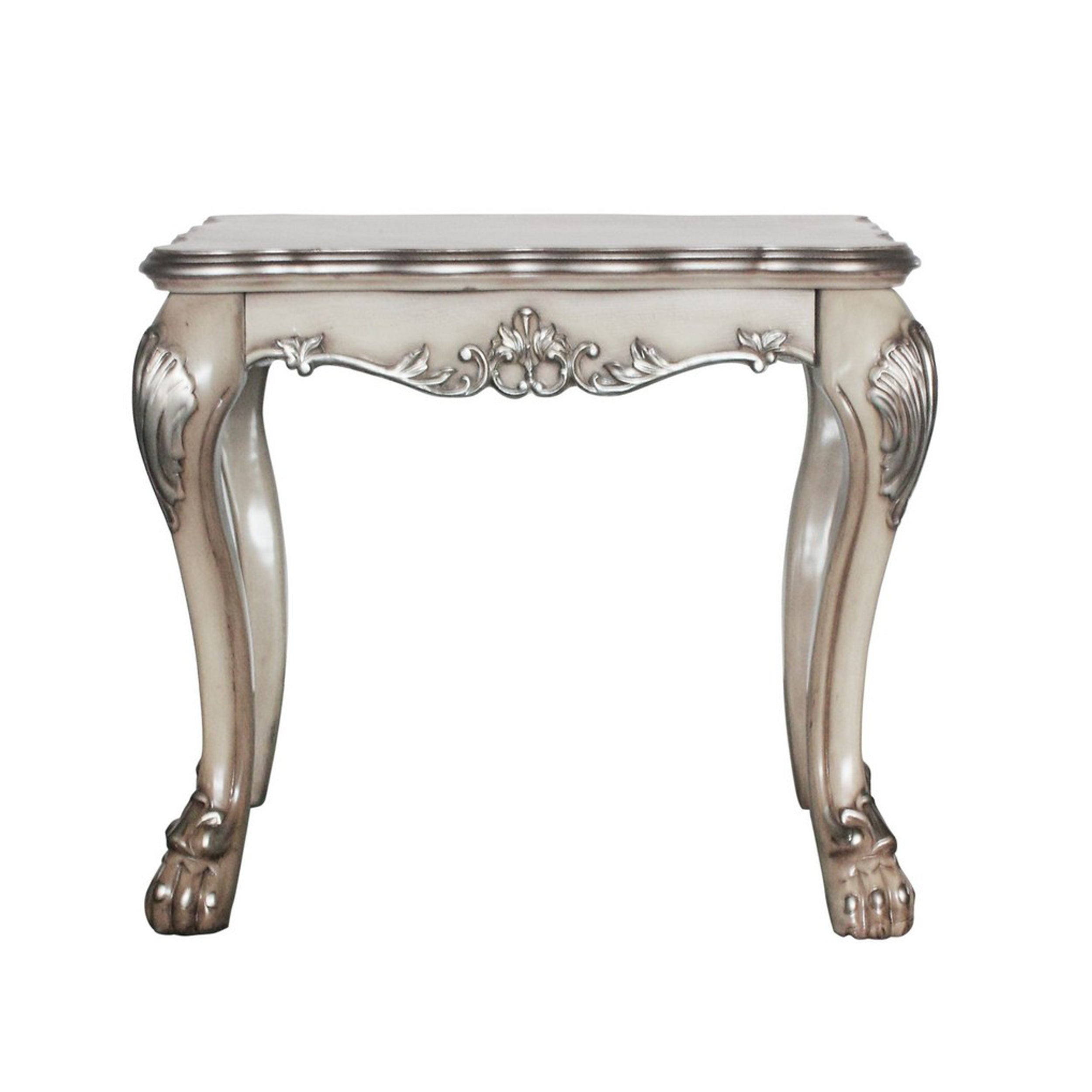 Benzara Scalloped Top Wooden End Table with Claw Leg Support, Antique Silver