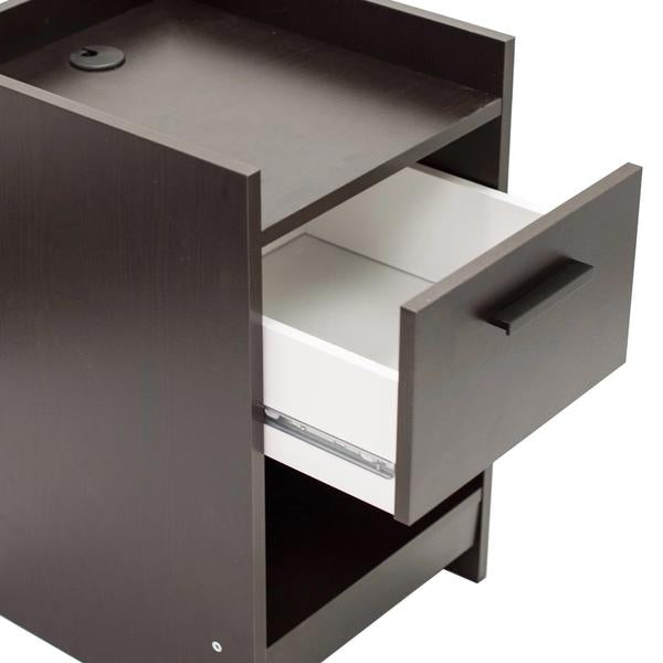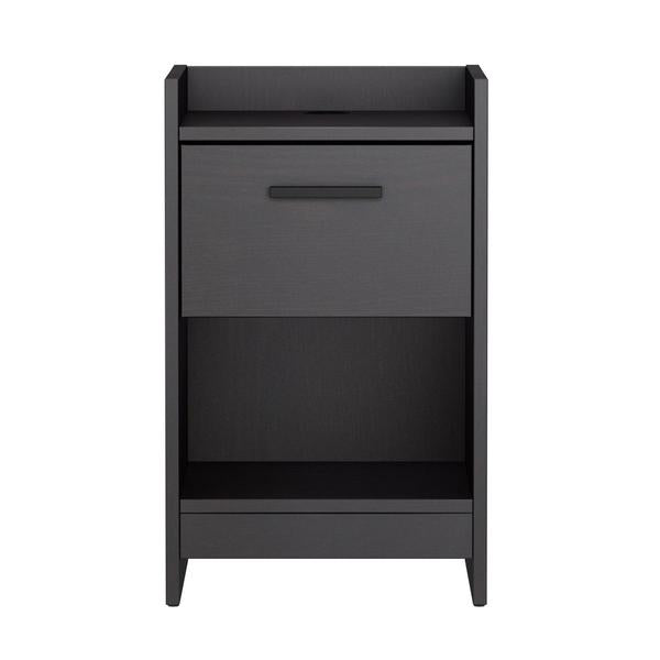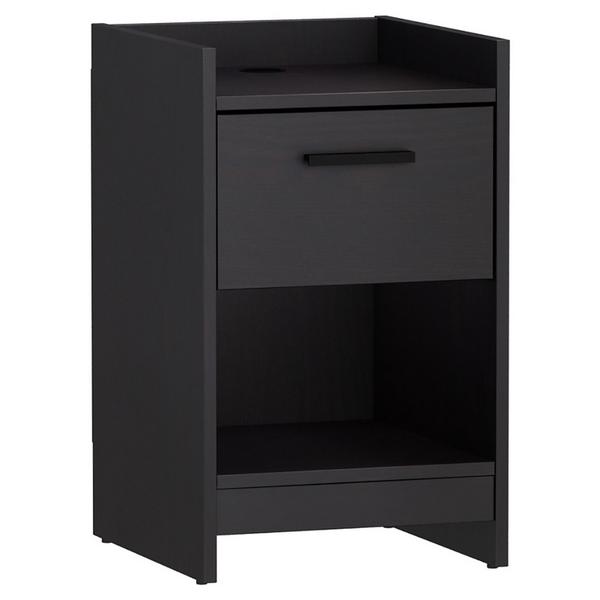 Accentuate your existing decor setting by bringing in this transitional style Nightstand which comes with 1 smooth gliding drawer and an open bottom shelf. Constructed from engineered wood and laminate frame, it is accented with black finish.