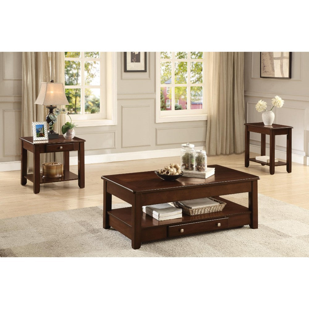 Benzara Solid Wooden Side Table With Bottom Shelf, Cherry Brown