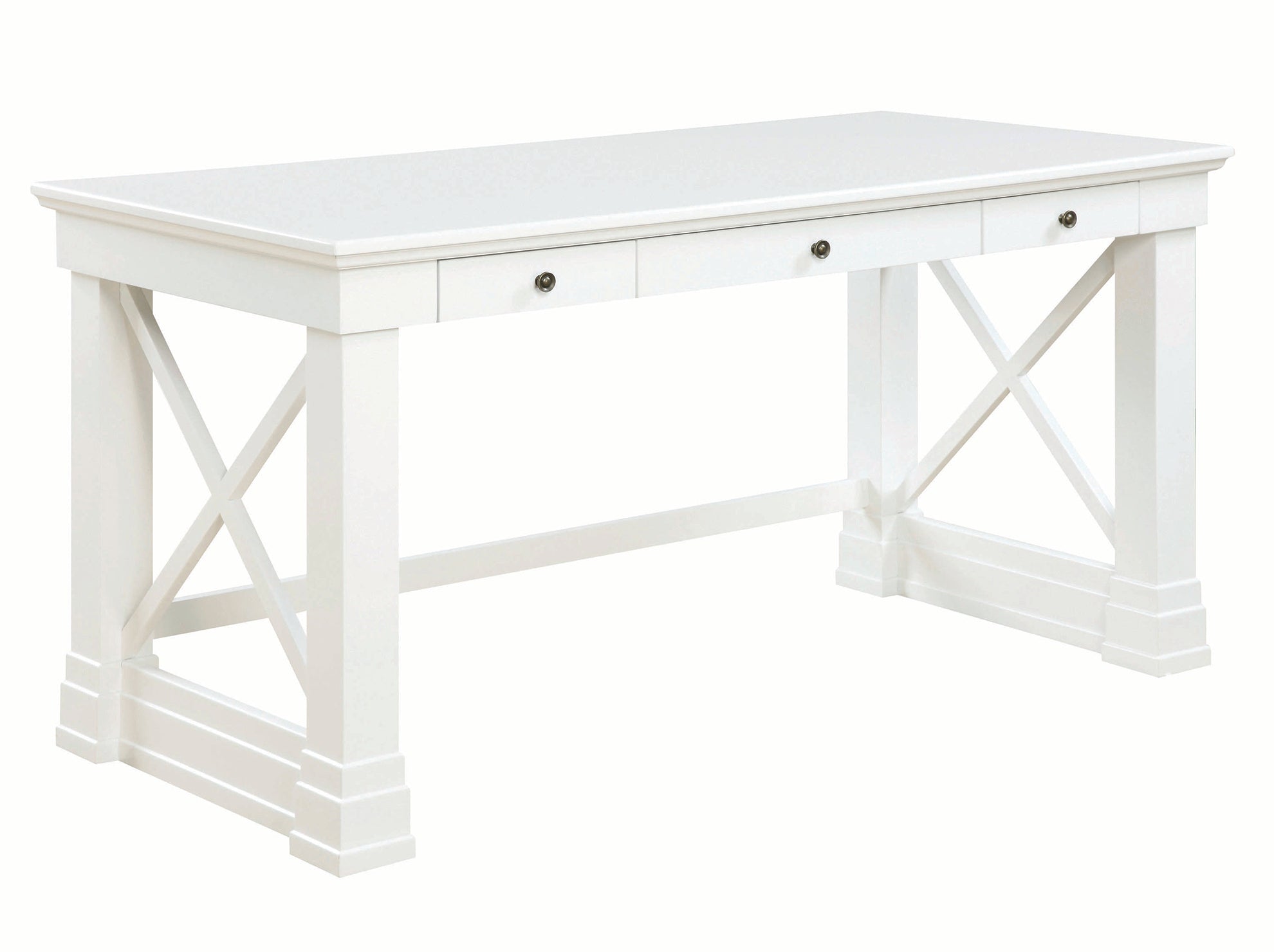 Benzara Three Drawer Rectangular Wooden Writing Desk with X shaped Side Panels, White