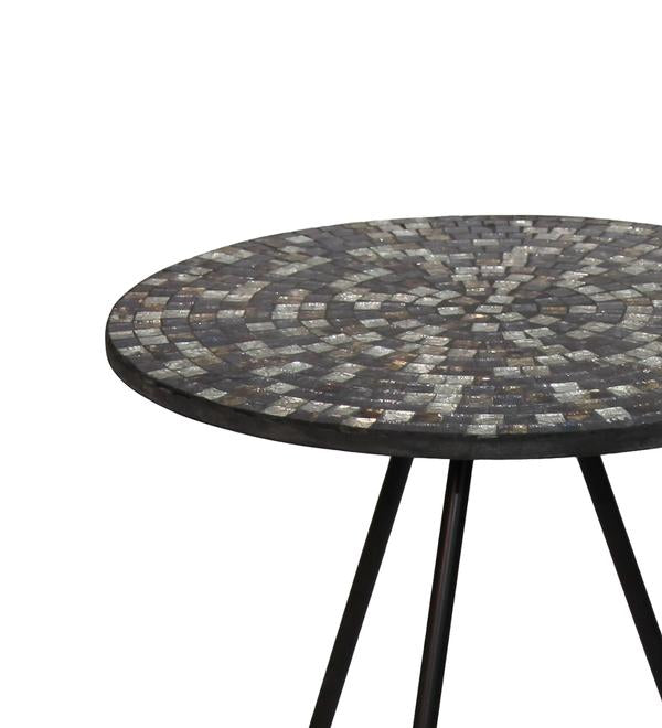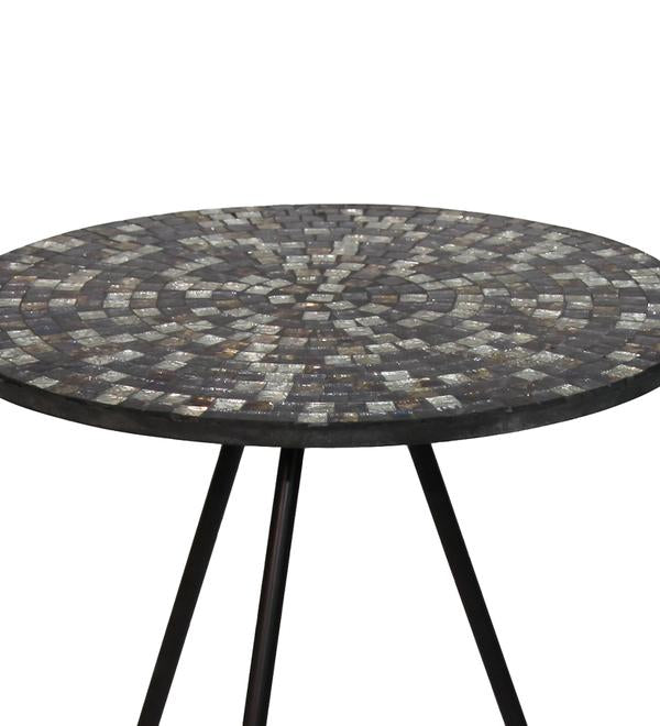 SKU - BZBM203701 Wood and Metal Round Accent Table with Mosaic Pattern Available at Uber Bazaar