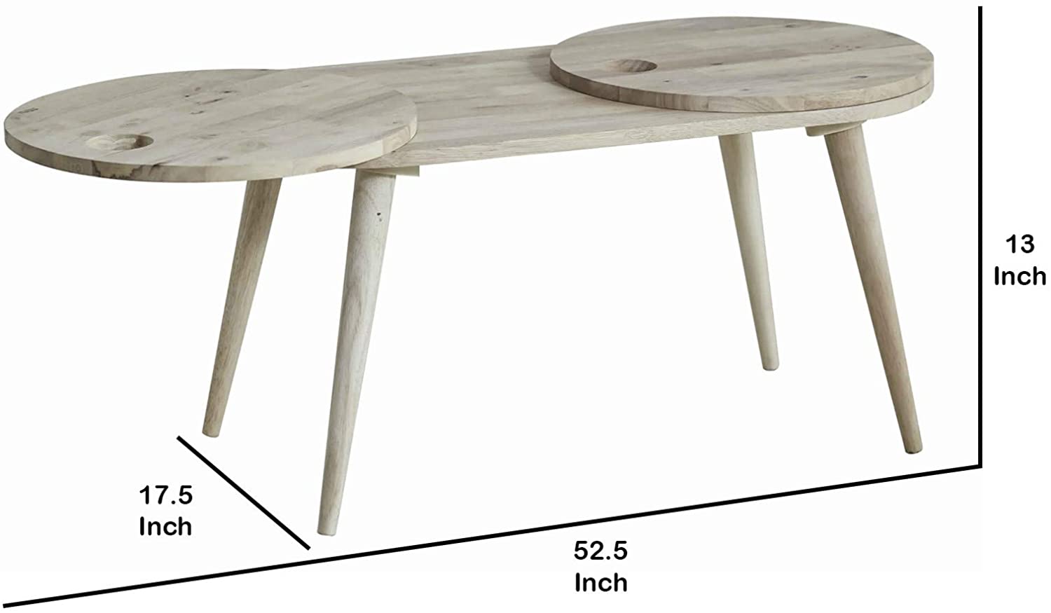 Benzara Wooden Coffee Table with 2 Round Lady Susan Shevles, Light Brown