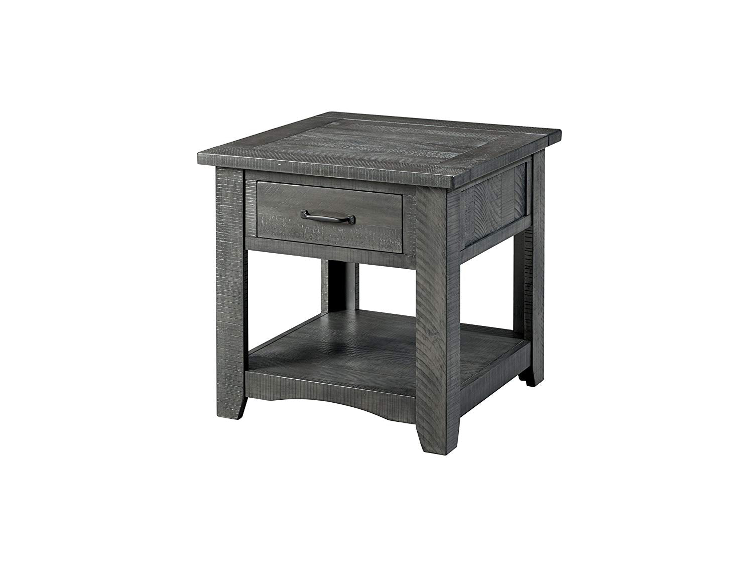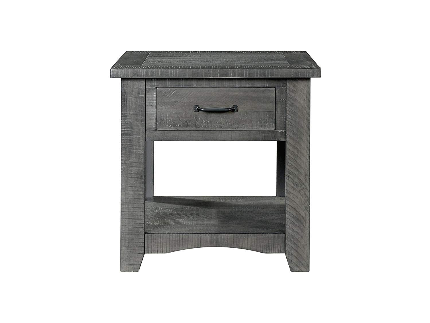 With a subtle color shade and functional appeal, the End Table is differently framed with rough-hewn saw marks that make it look rustic. Made from pine wood, the gray finish table features one drawer that can shelter many things along with an open bottom shelf.