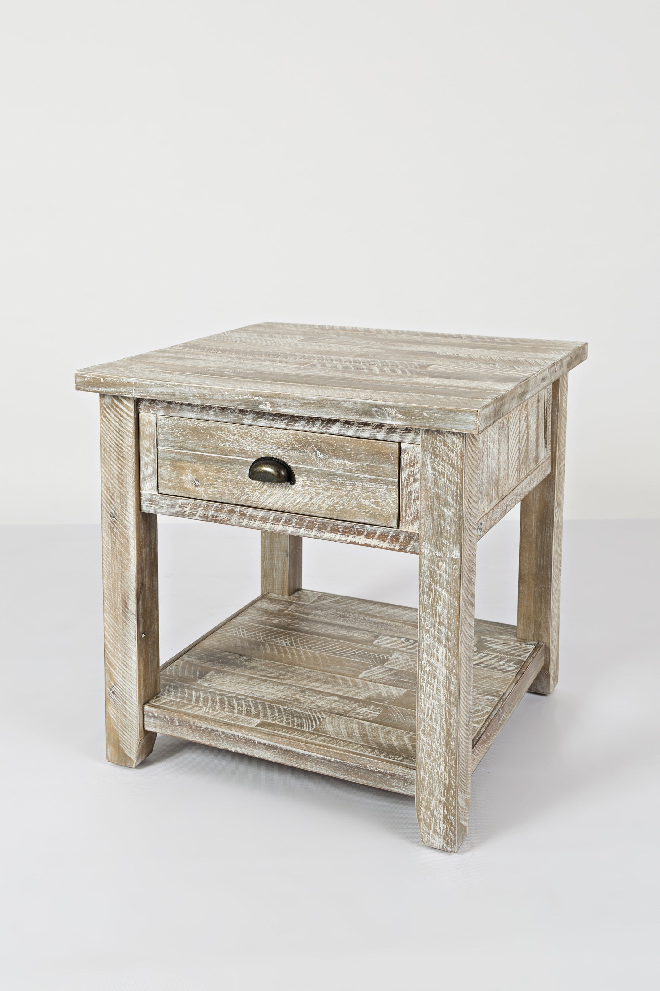 • Sturdy constructed end table has one drawer and one open shelf