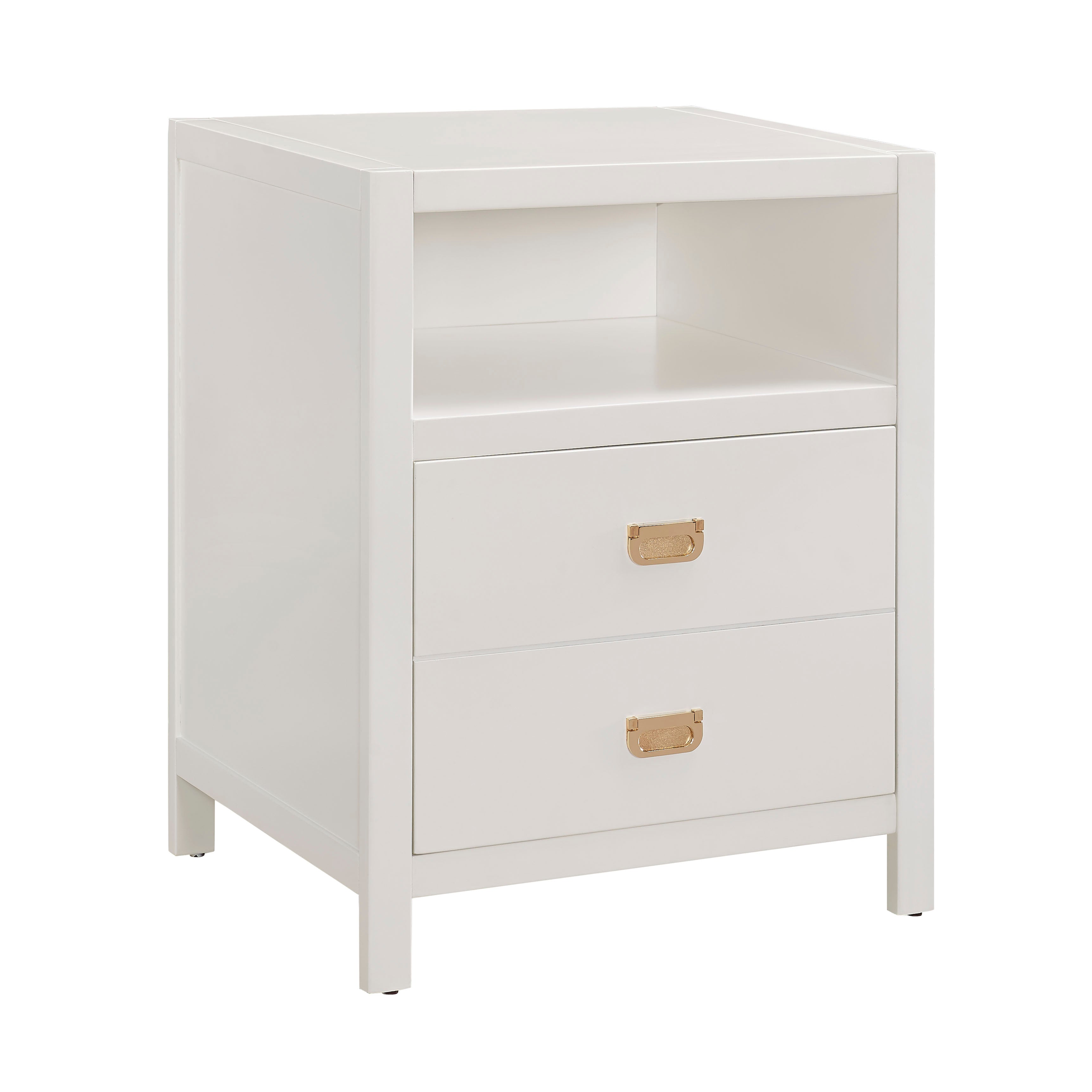 Benzara Wooden End Table with Two Drawers and One Open Shelf, White