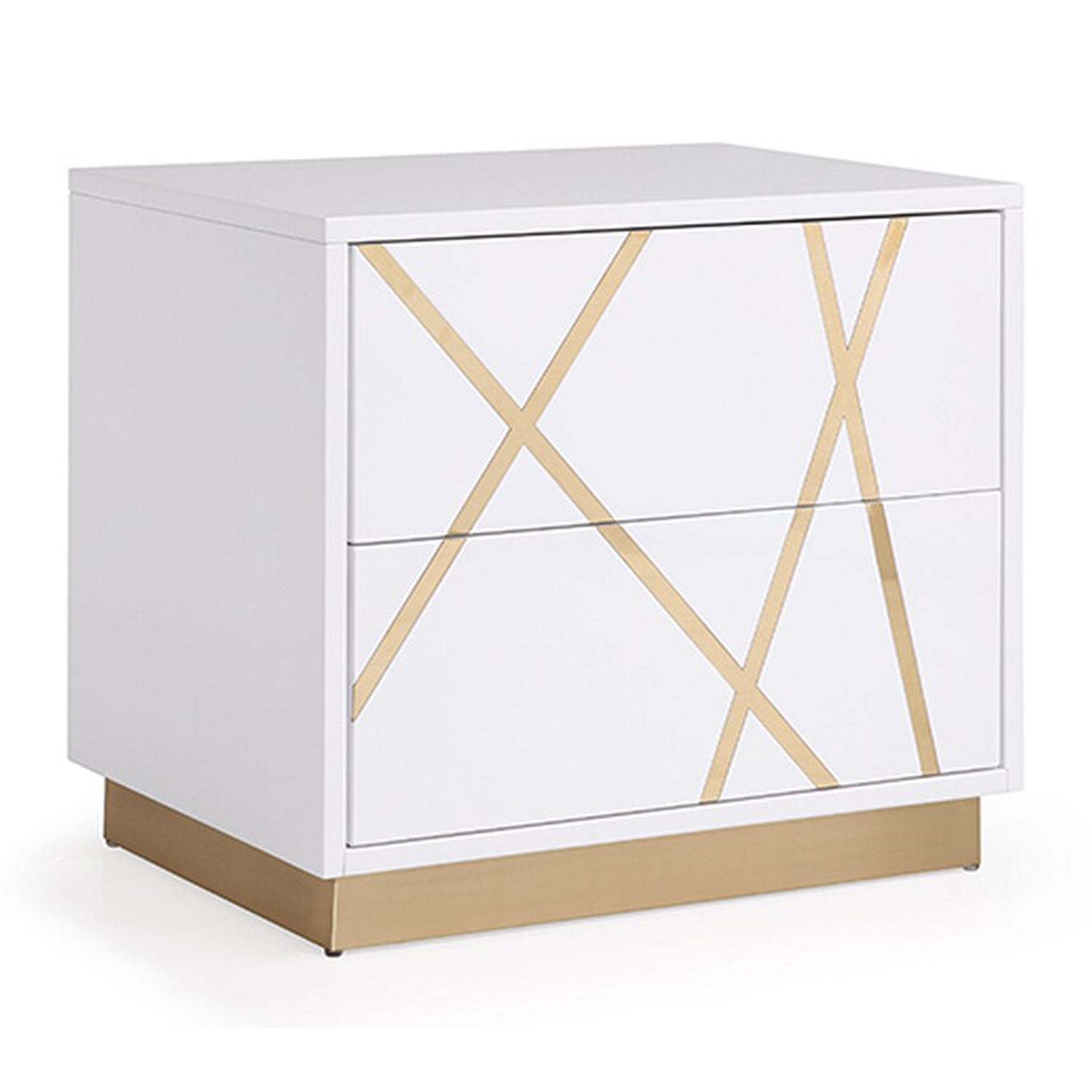 Impart more storage space your home with the inclusion of this elegant nightstand. Constructed from solid Wood, it features 2 drawers, incorporated with soft closing mechanism to prevent slamming. It showcases gold painted accents on white finished body, granting additional style.