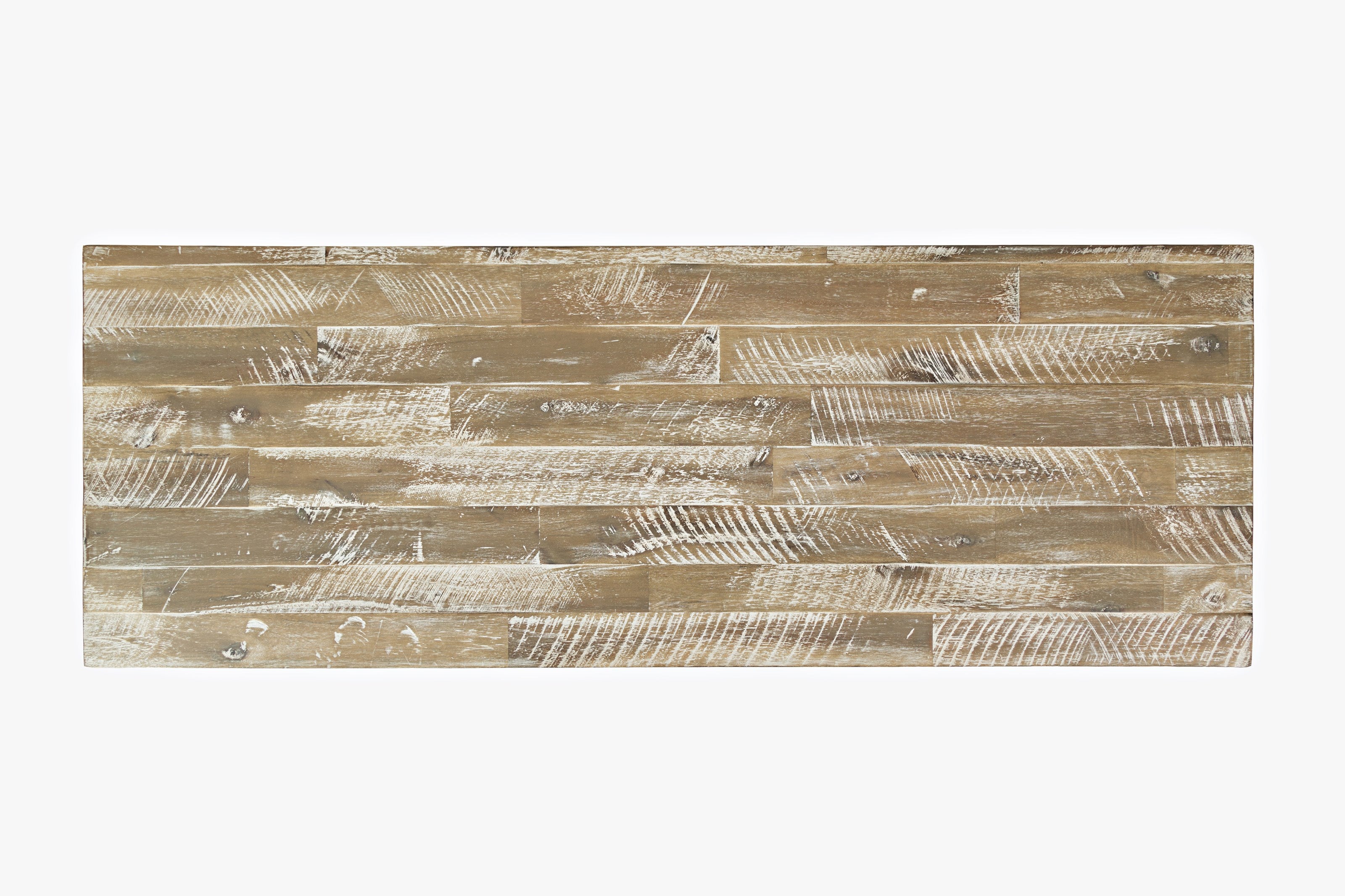 Benzara Wooden Sofa Table With Three Drawers And Two Open Shelves , Washed Gray