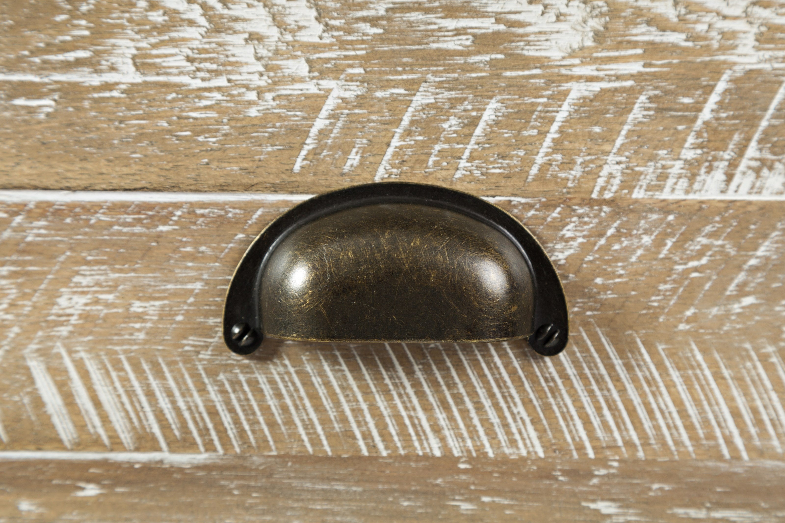 This interactive multi-space sofa table combines fun and functional storage space for modern looking homes. Made up of wood, finishes in washed gray color, this sofa table features three drawers with cut-out handles, and two open shelves with flat top surface. This can be used to store all knick-knacks or to display decorative accents on it. The storage drawers and open beneath shelves can store a lot. This sofa table is not just a table, many more convenient adjustments you can make with this elegant furniture piece. Drawer Dimensions: 10.5``W x 13.25``D x 4``H. Shelf Dimensions: 47.25``W x 16.25``D x 7.5``H.