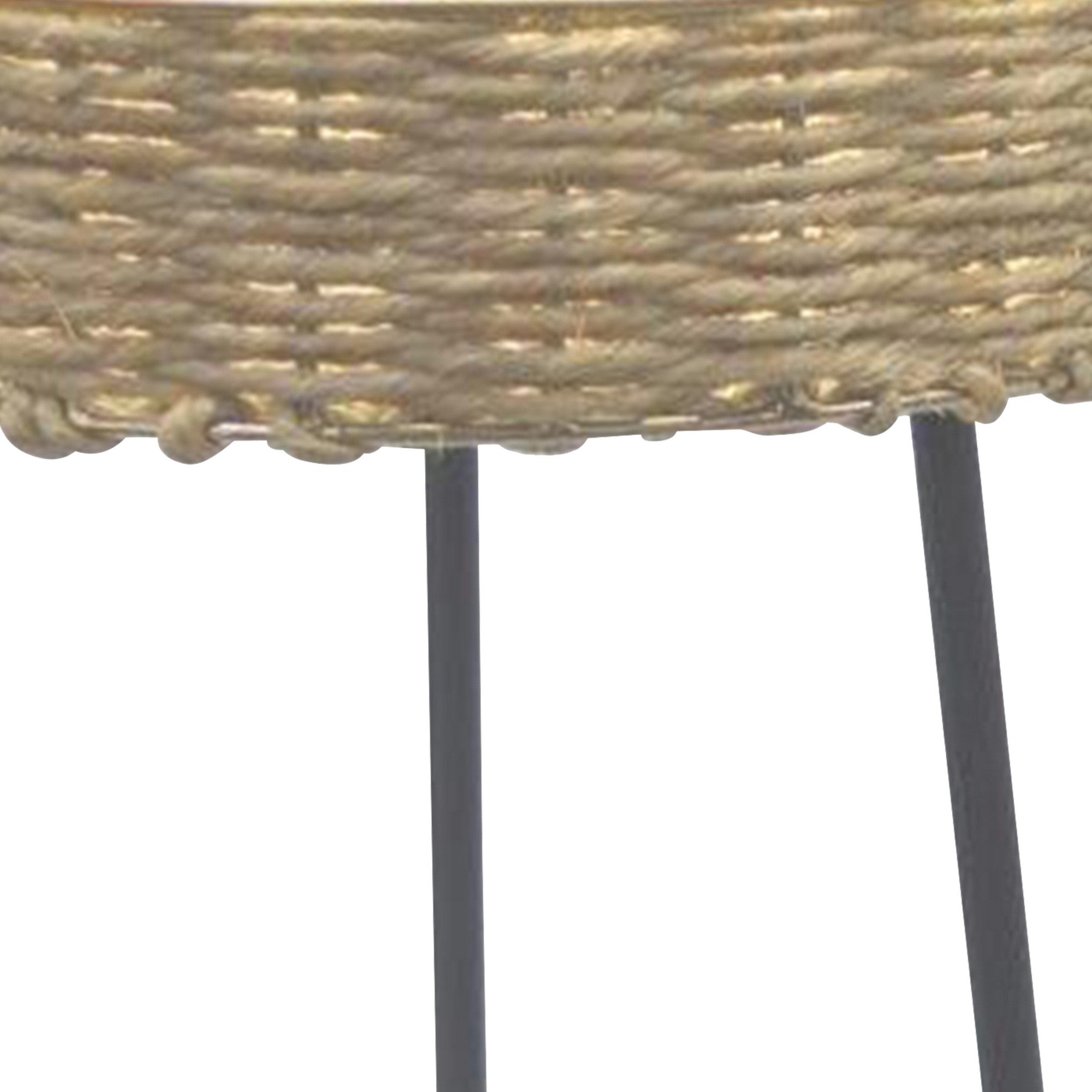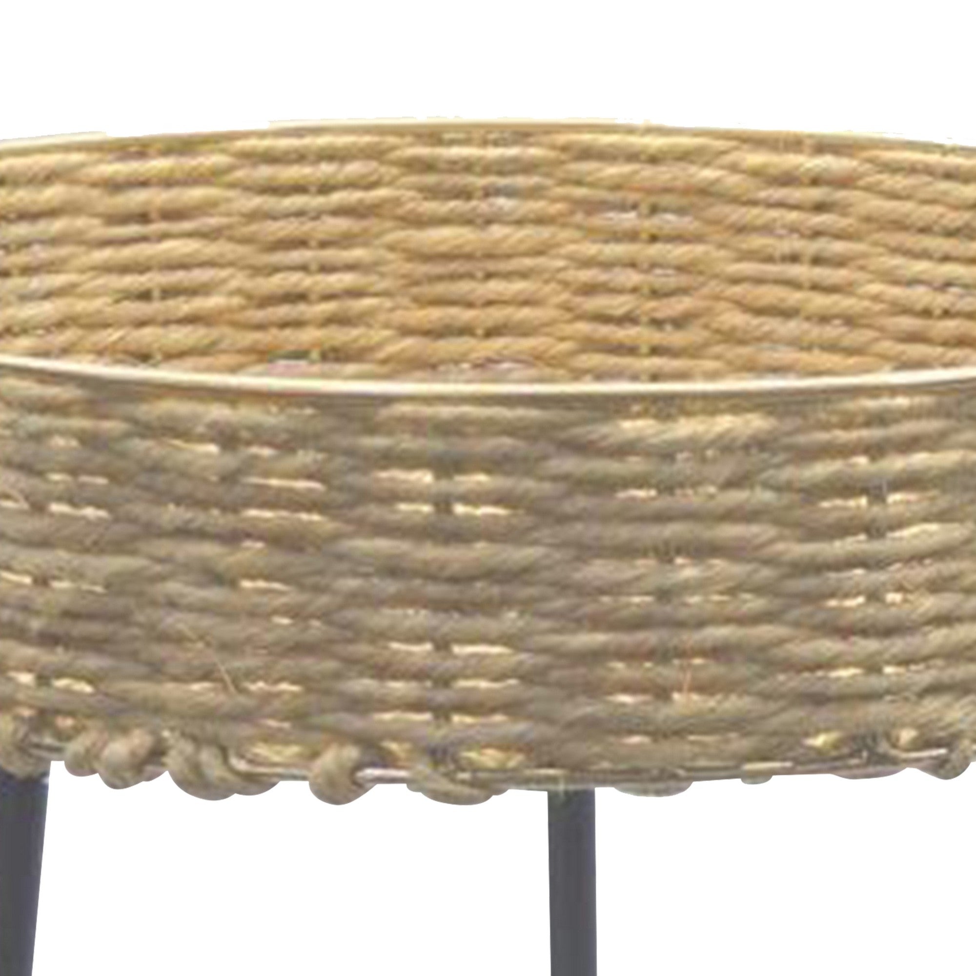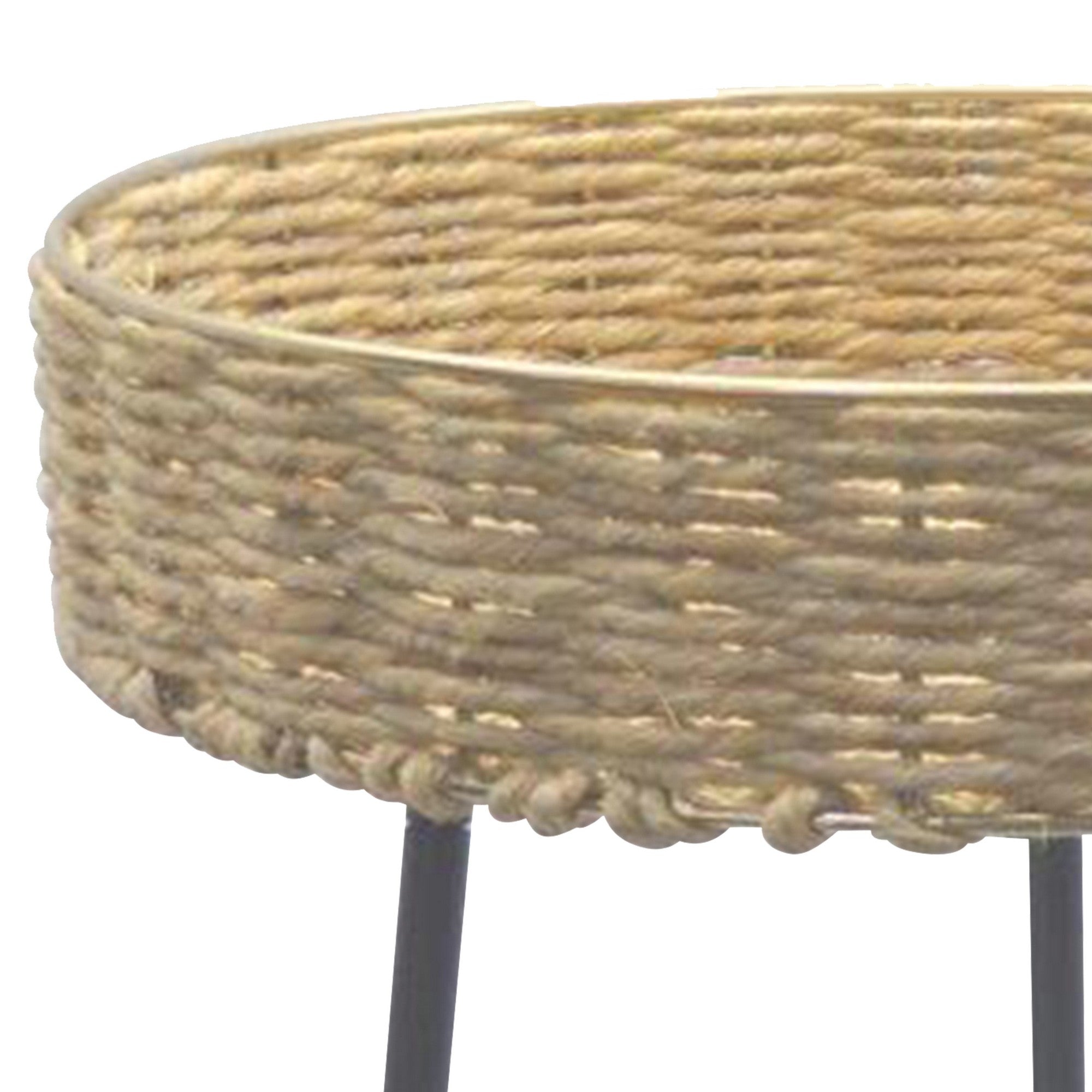 Transform the aesthetics of your living space with the inclusion of this generous and elegant coffee table. It features a metal constructed frame with woven rattan on it, incorporating a round tray like tabletop. It is supported by tubular metal legs, providing stability and durability.