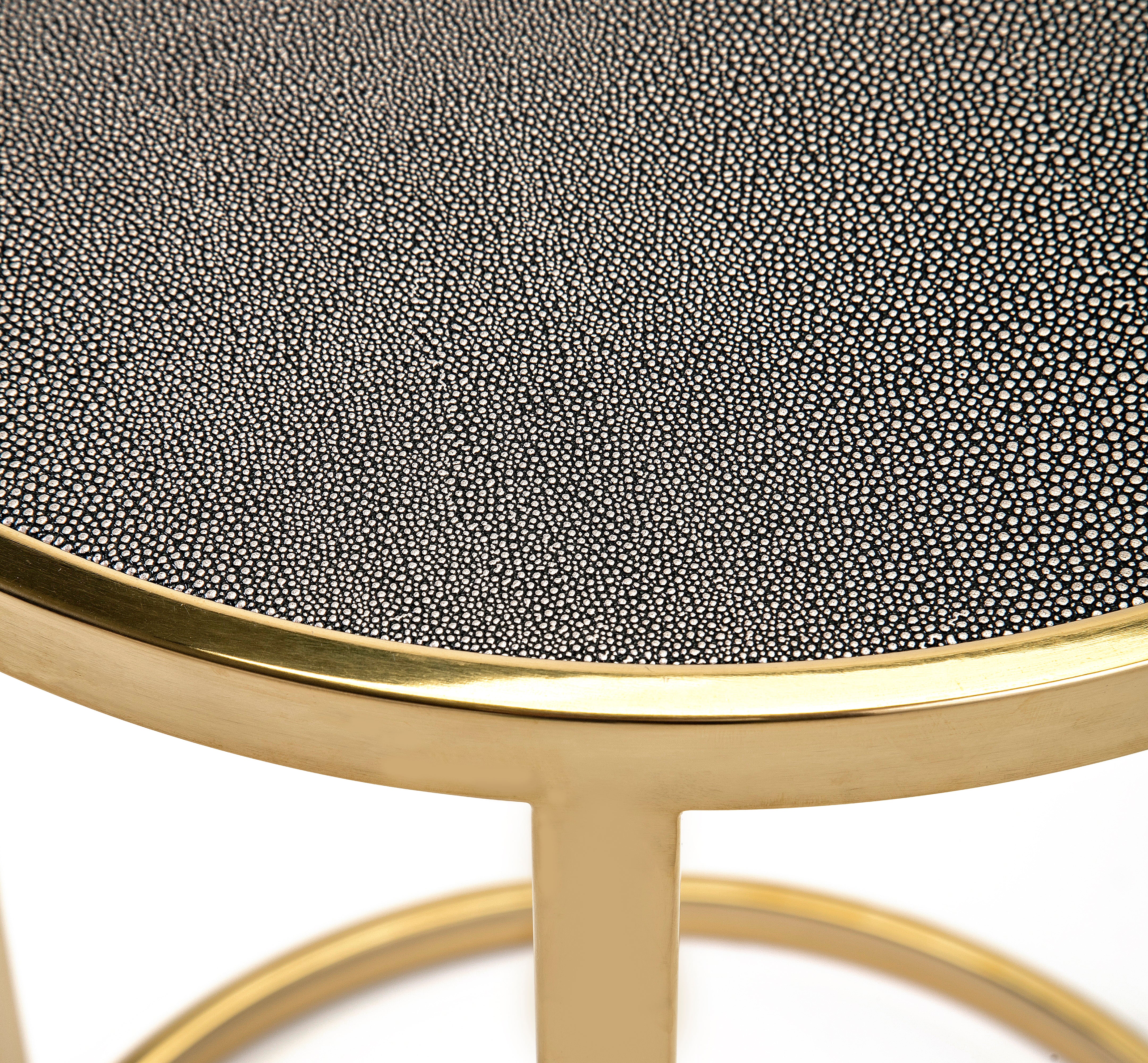 - Tops are faux leather shagreen