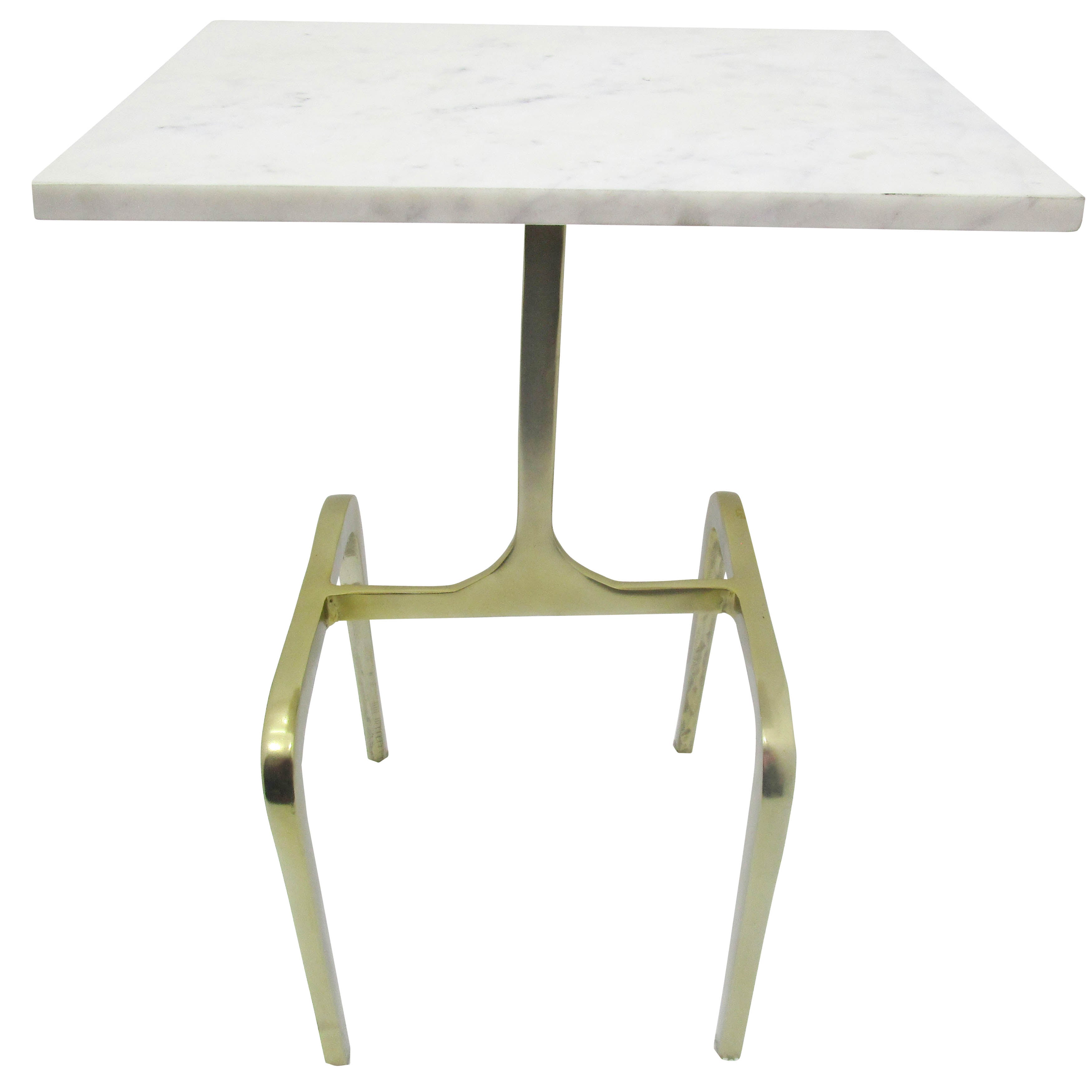 Sagebrook Home Metal 22`` 4-Legged Accent Table, White Marble, Gol