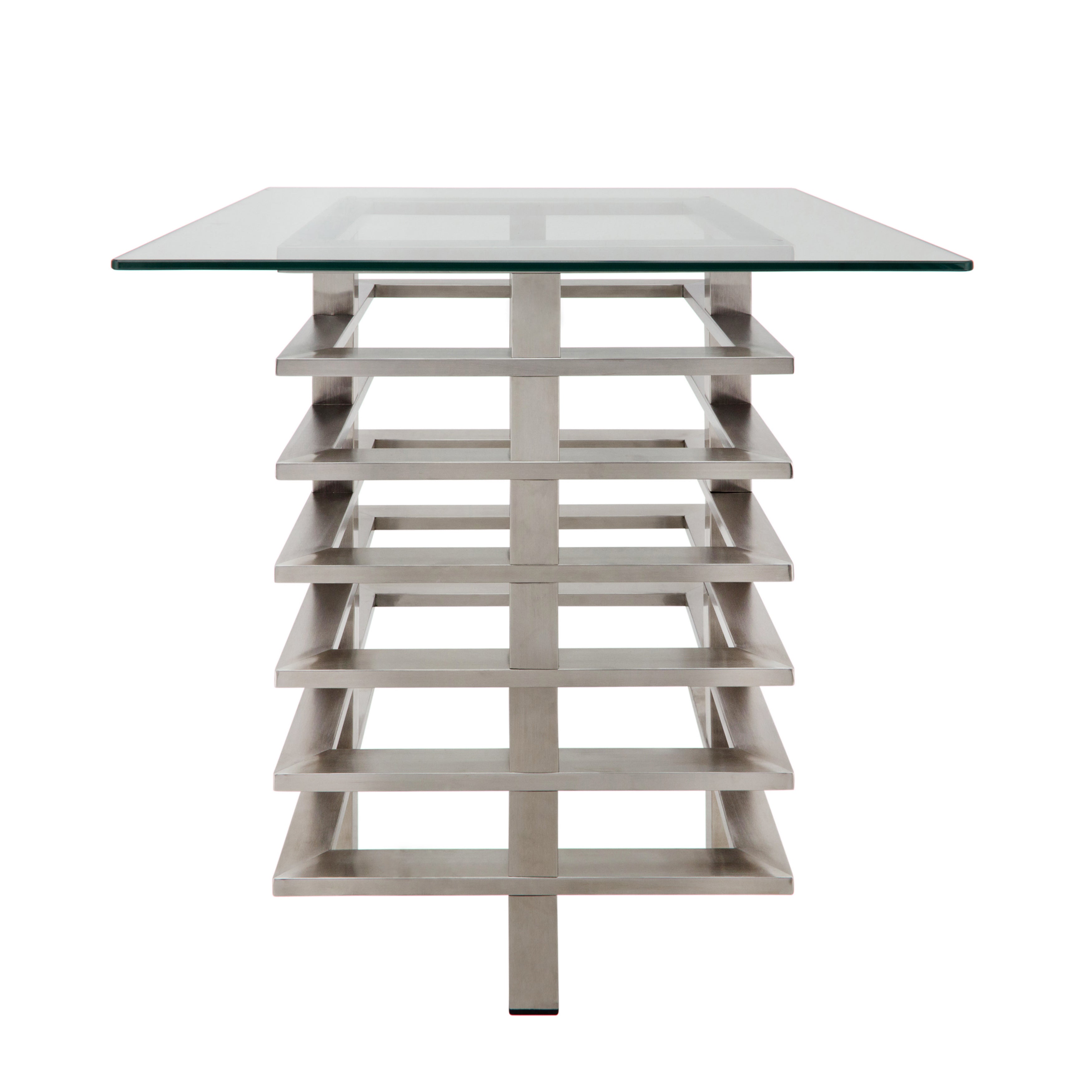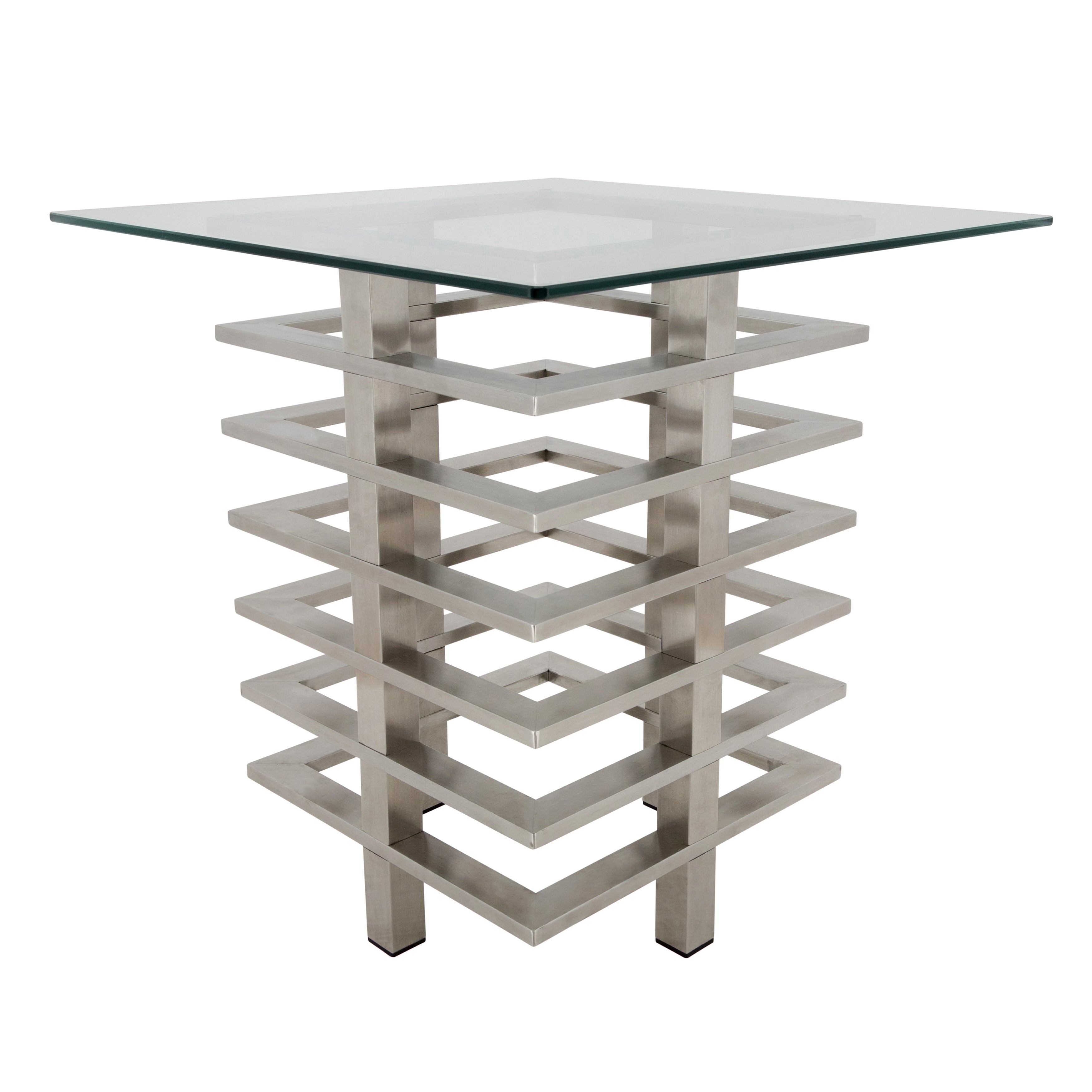 Modernize your home with this geometric style side table. With a stunning silver base to create a glamorous decorative point in your home and a glass table top for an open view. This table will give your space sophistication and a stunning space to display any impressive decor you may want to show off.
