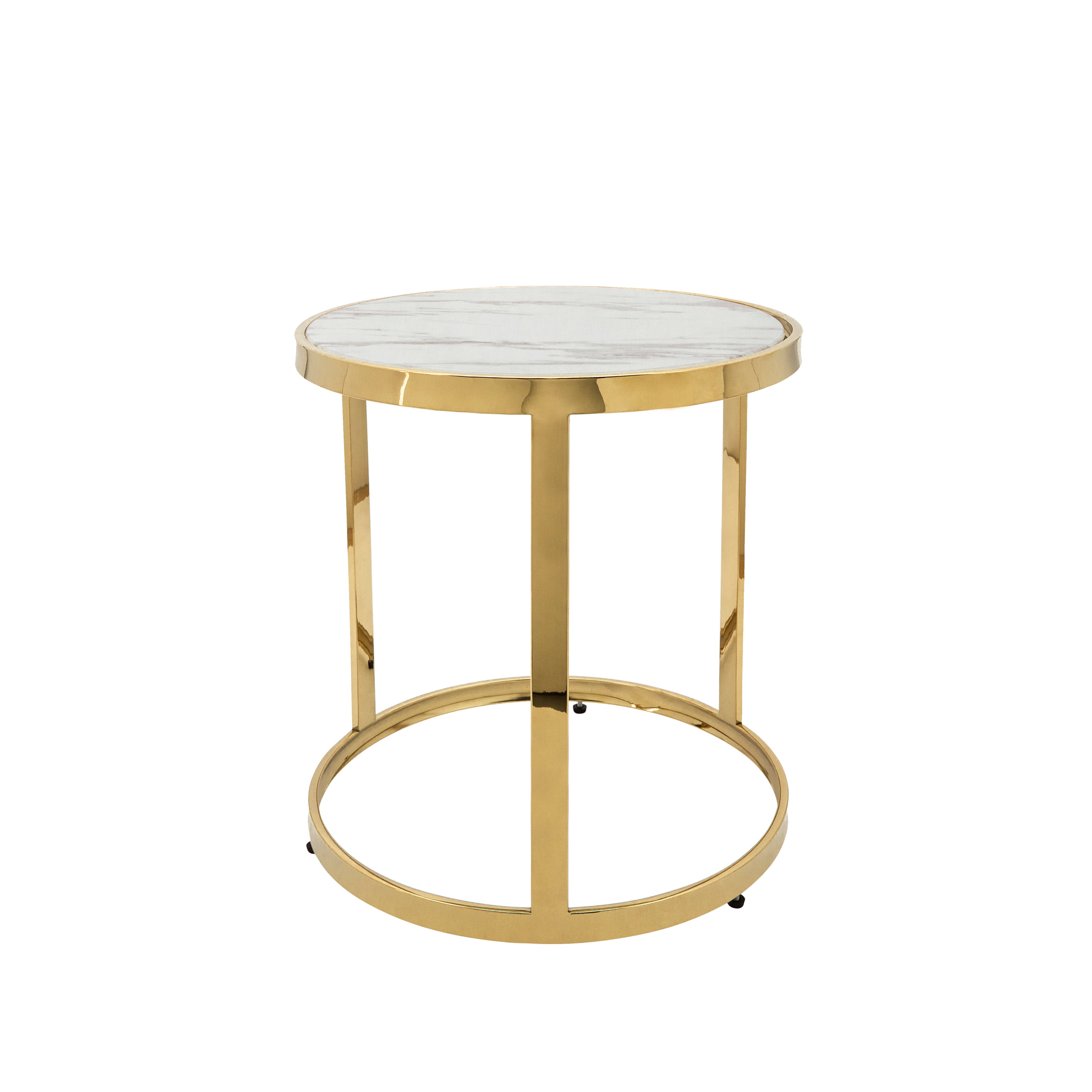 This set of two round marble top nesting accent tables features a gold metal cage base for a cool contemporary style. Made with an overlapping size and design, this duo can be displayed in a pair to create balance and presence or set in different spaces to promote continuity throughout your home. Each table is a precision crafted with a marble top to create an eye-catching centerpiece in its own right.