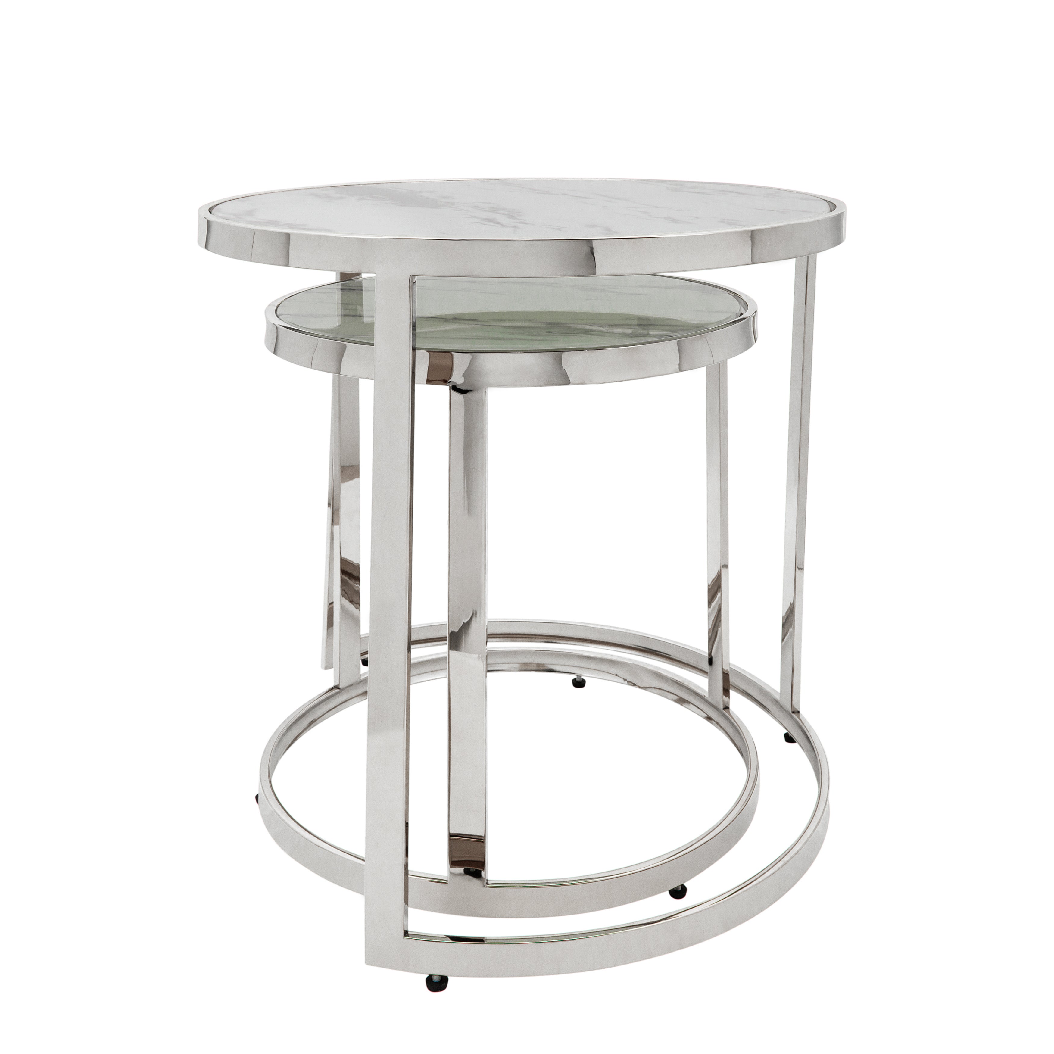 Sagebrook Home Set of 2 Metal Round Side Table, Silver