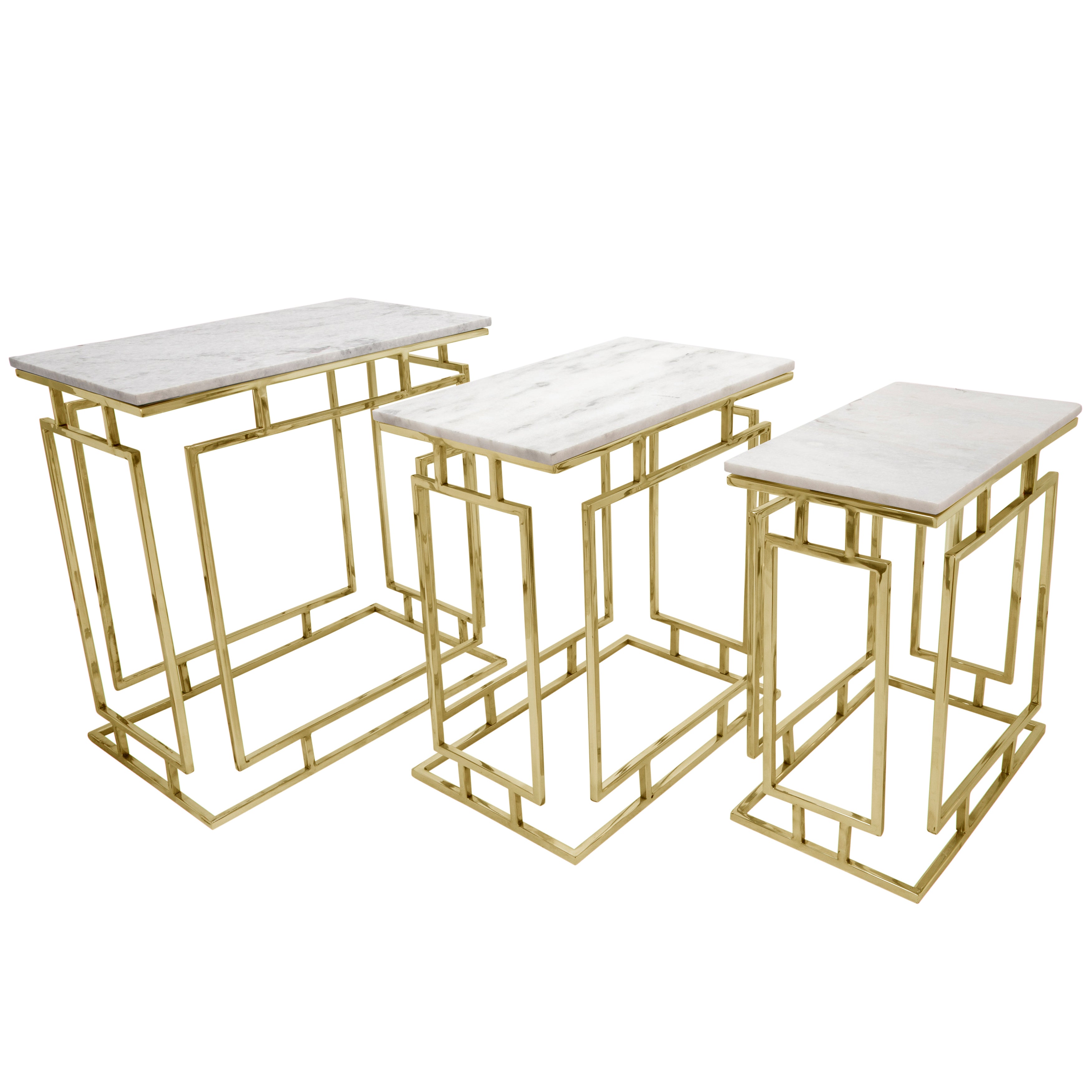 See modern decor from a different angle with beautiful set of three accent tables. Featured to stand alone or displayed in groups, while offering beauty and elegant minimalism with beautiful marble tops that will take center stage in any setting.