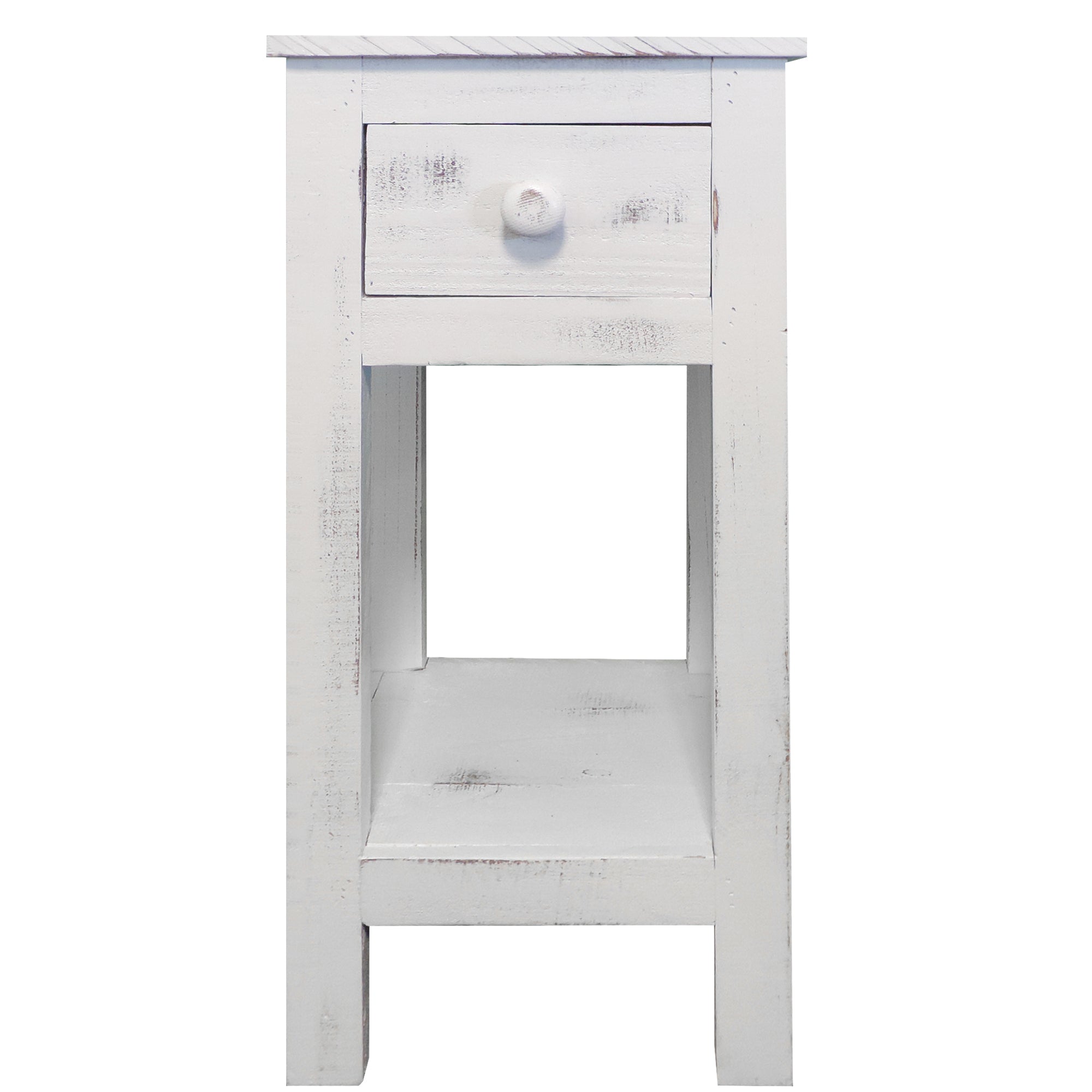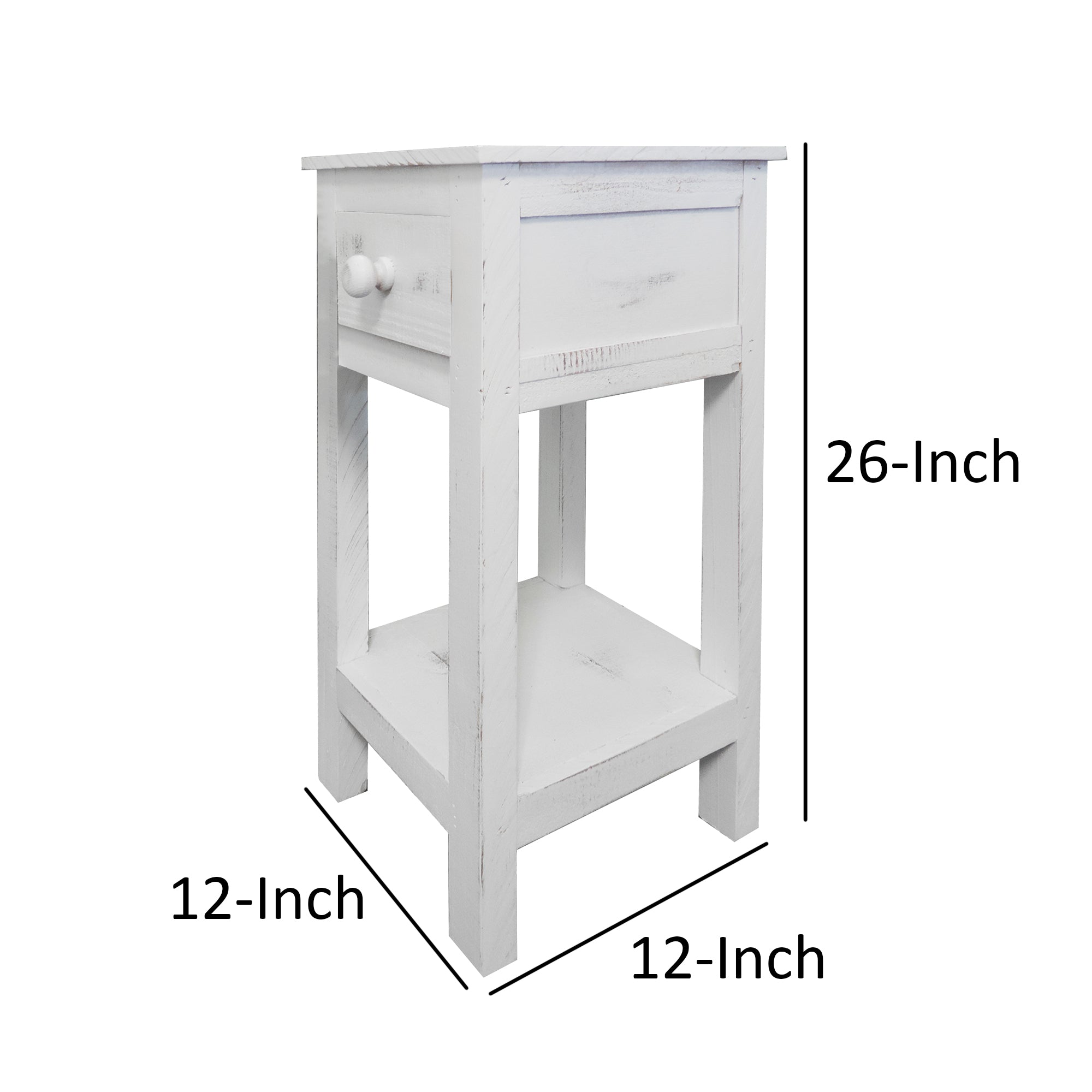 The Urban Port Rough Sawn Textured Wooden Side Accent Table With Drawer, Antique White