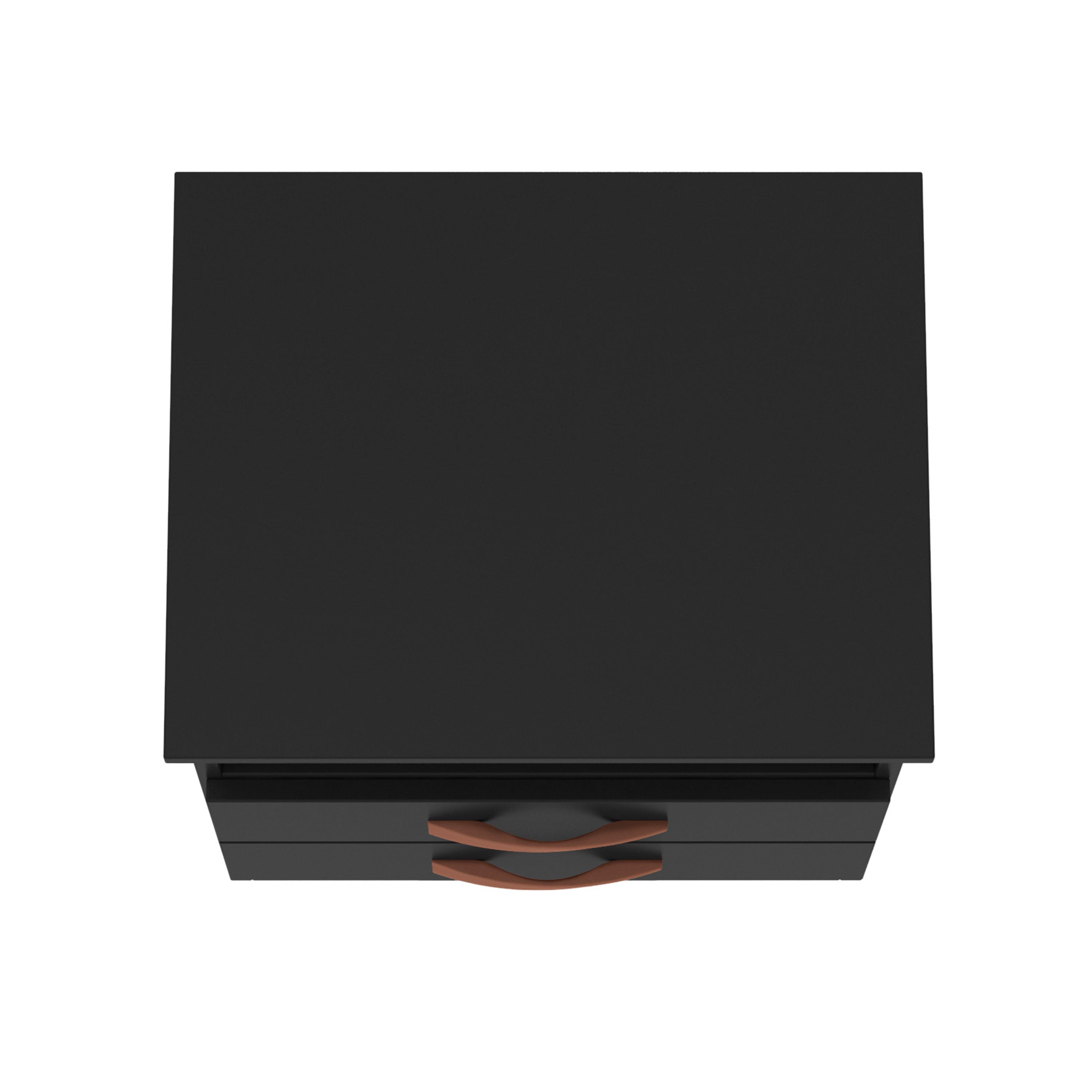 A perfect companion to your bed, this minimalistic design Accent Nightstand makes a great addition to your bedroom. It is handcrafted from particleboard and the black finish makes it a versatile piece that blends in well with various bedroom settings. The two drawers with metal bar-pulls provide storage to your bedtime essentials, while the spacious top can be used for thedecorative display.