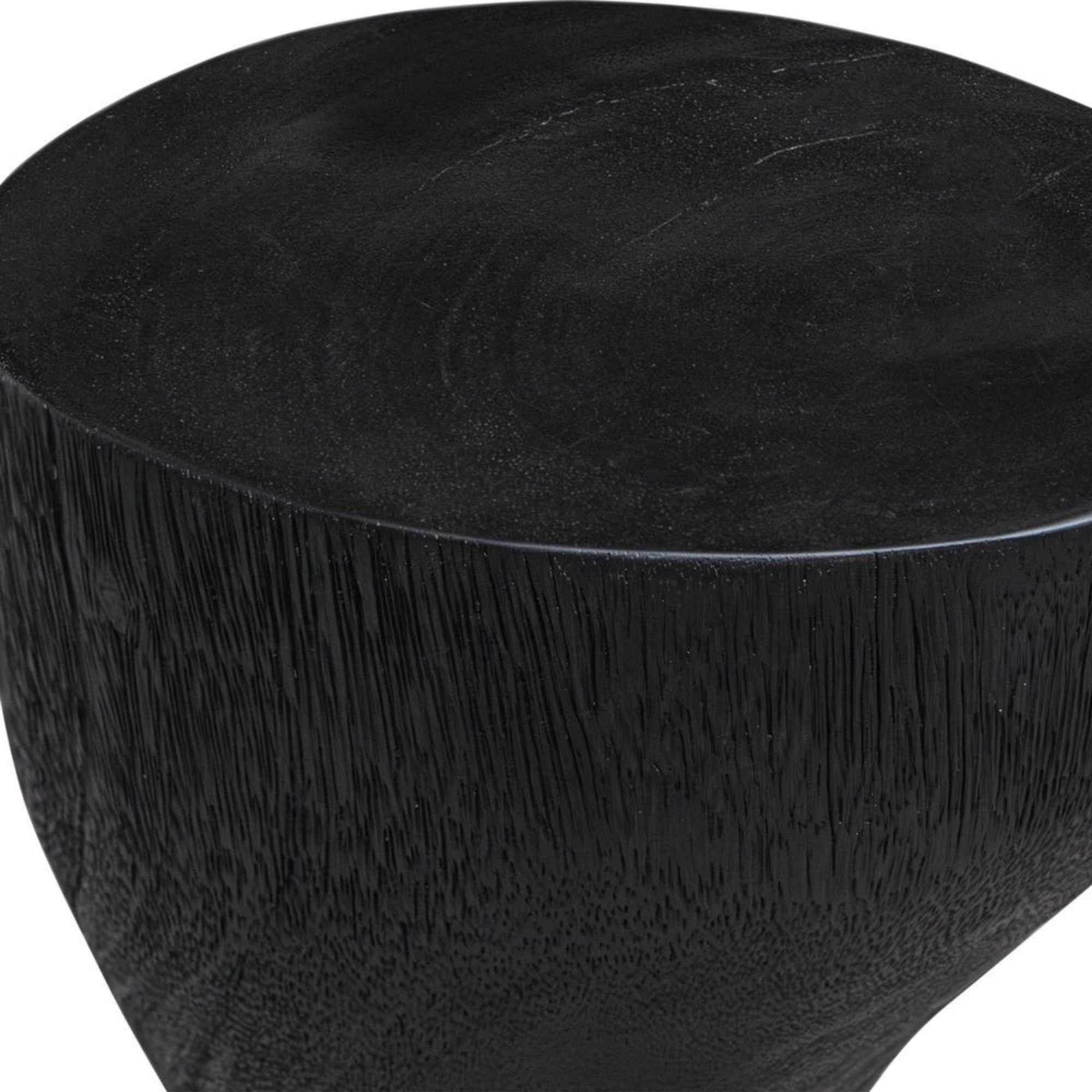 The Mattison Drink Table blends bold form and natural texture in a striking, modern silhouette. Its hand-finished teakwood base is carved into a unique hourglass shape, showcasing rich wood grain and tonal variation. Topped with a smooth, glossy black surface, this compact accent table delivers both contrast and sophistication. Whether styled indoors or in a covered outdoor setting, it brings a sculptural edge and functional flair to your lounging space.