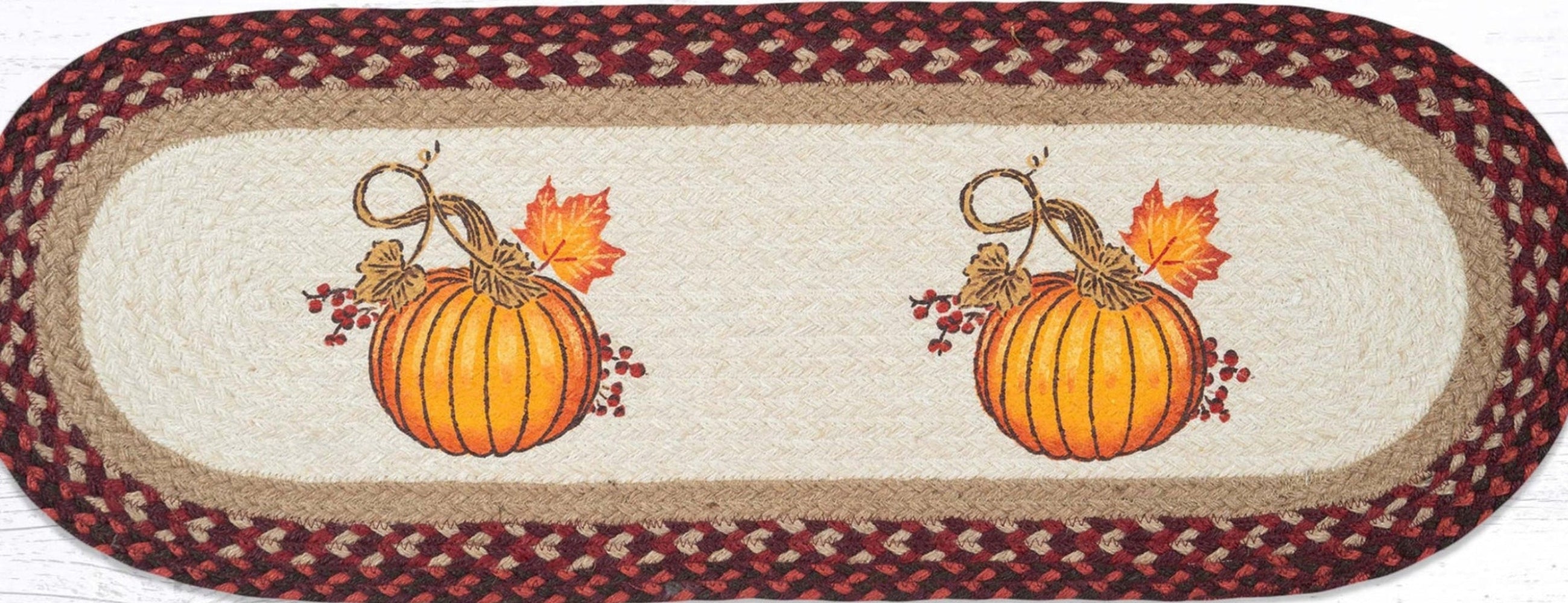 Autumn Pumpkin Oval Table Runner – 13"x 36" Braided Jute Hand-Stenciled Runner For Indoor Decor by Earth Rugs