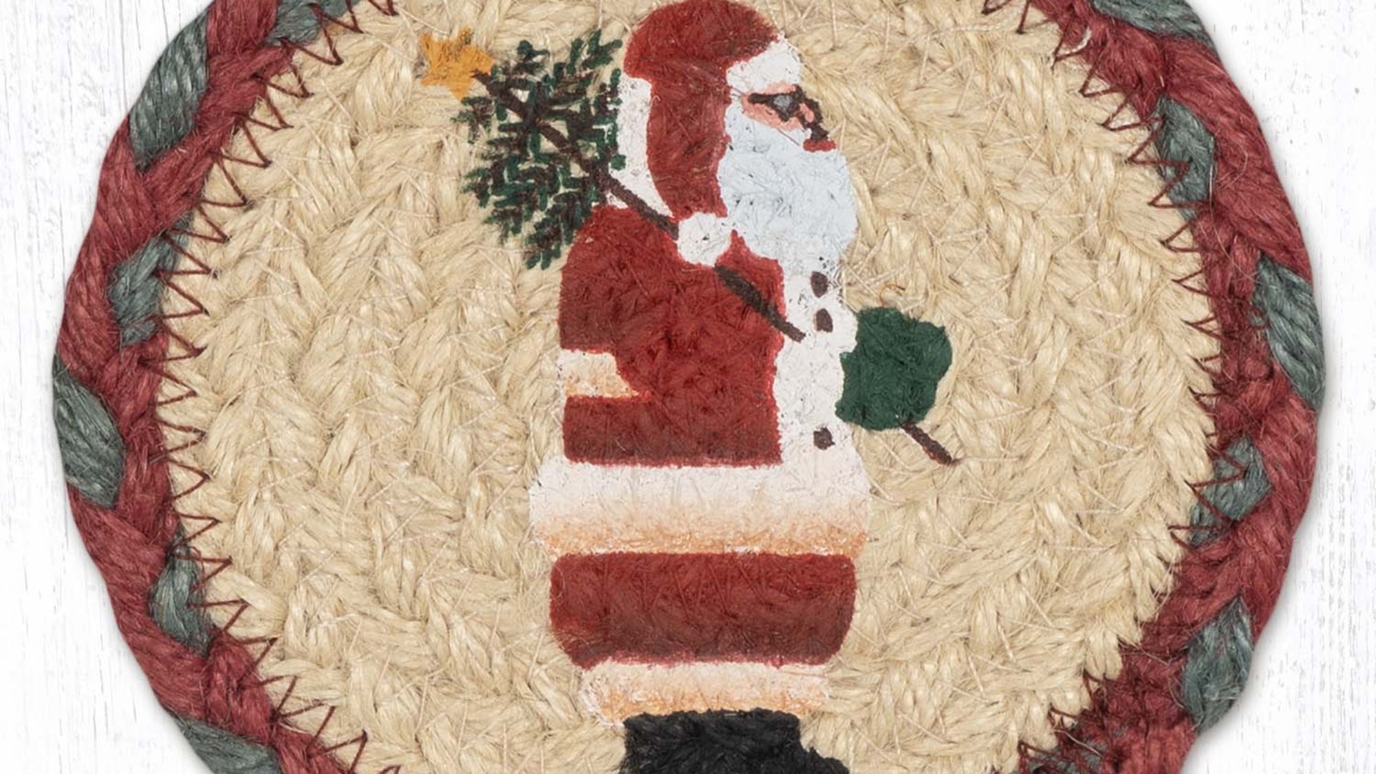 Earth Rugs 5" Santa Coaster – Farmhouse Rustic Christmas Tabletop Protector