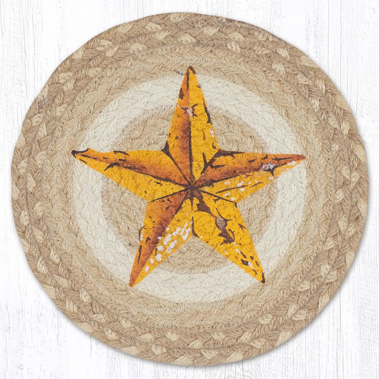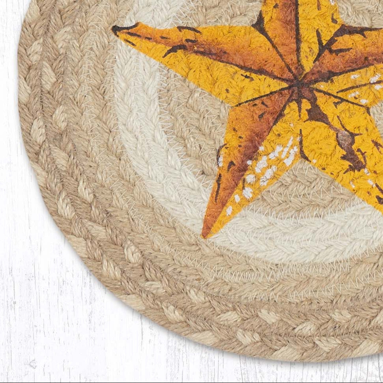 SKU - ER80-776YSEarth Rugs Bold Yellow Star Table Mat – Handcrafted Jute Trivet for Dining Rooms