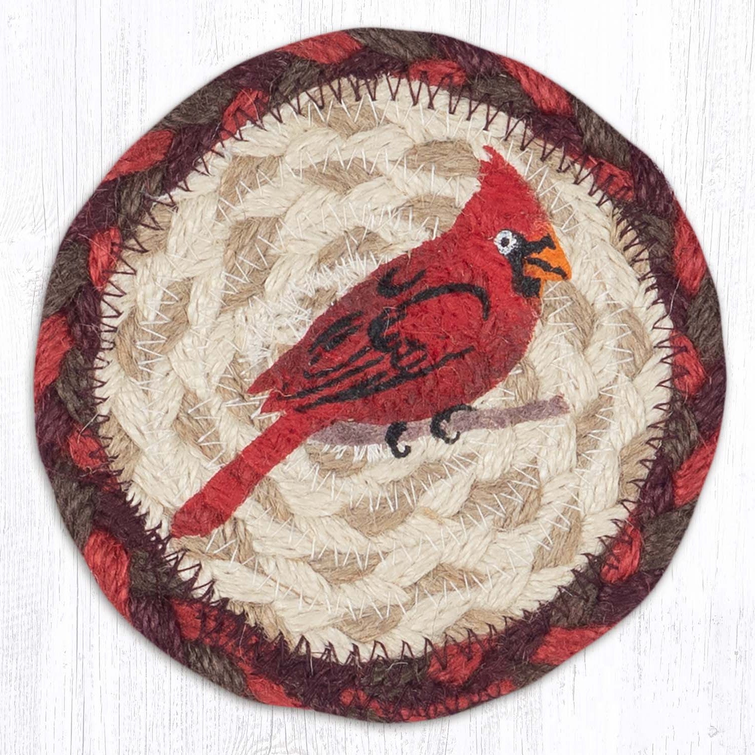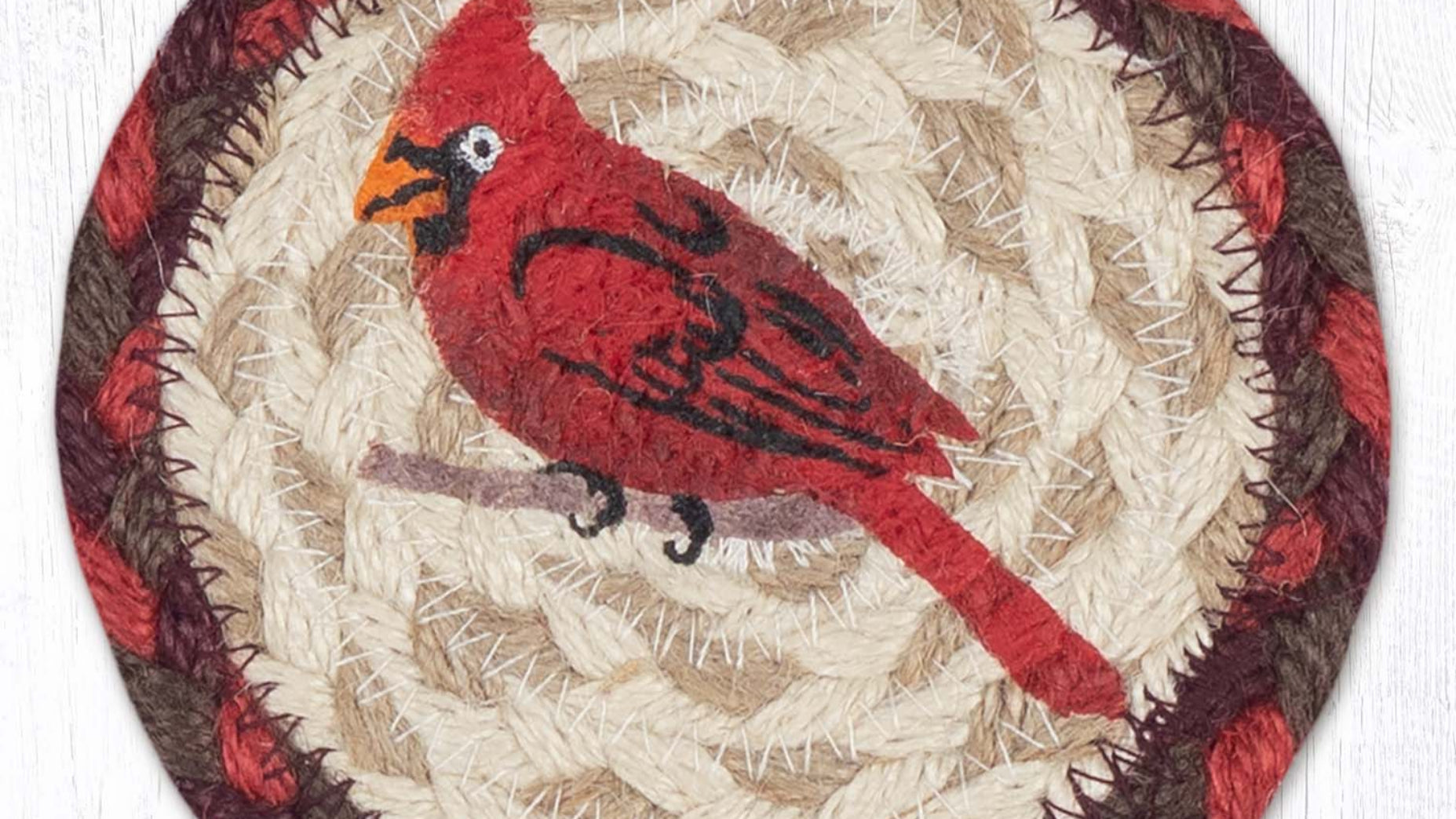 Add a touch of natural beauty and bold color to your home with the Earth Rugs Cardinal Printed Coaster. This 5-inch by 5-inch square coaster features a striking red cardinal perched in a serene setting, printed on a durable braided jute base. The vivid contrast of the red bird against warm, earthy tones makes it a standout piece for seasonal or everyday use. Ideal for protecting tables from heat and moisture, this eco-friendly coaster suits rustic, woodland, holiday, or nature-inspired décor. Lightweight and flexible, it's easy to display during winter months or year-round for a charming pop of color.