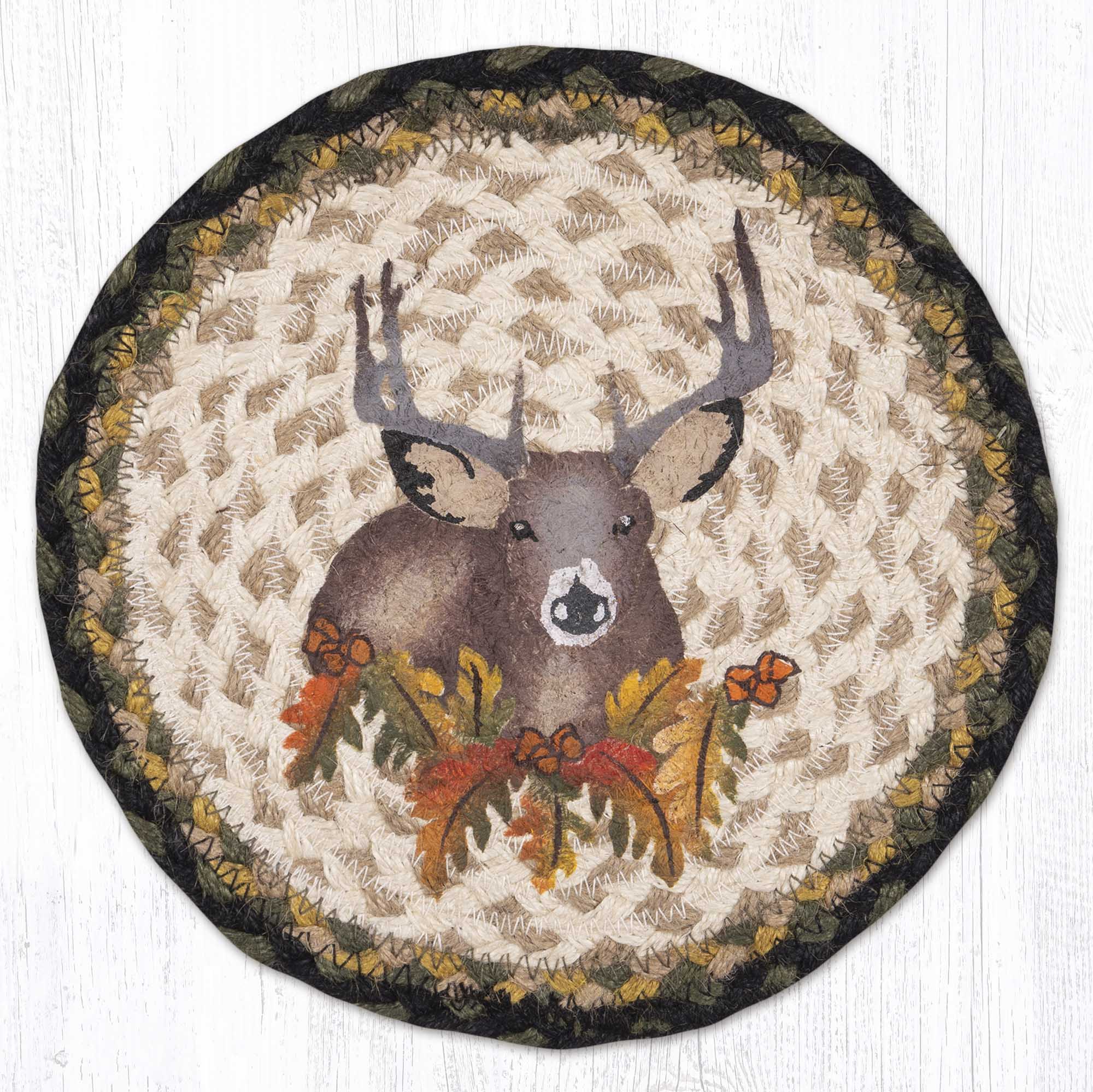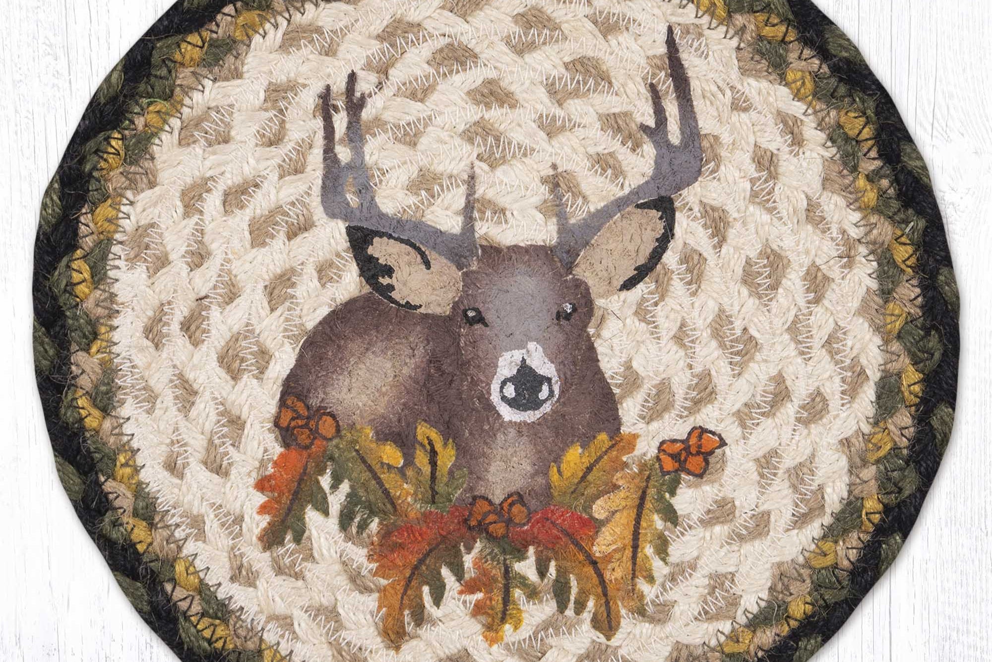 Earth Rugs Deer Floral Printed Round Jute Trivet – 10" Rustic Nature-Inspired Design