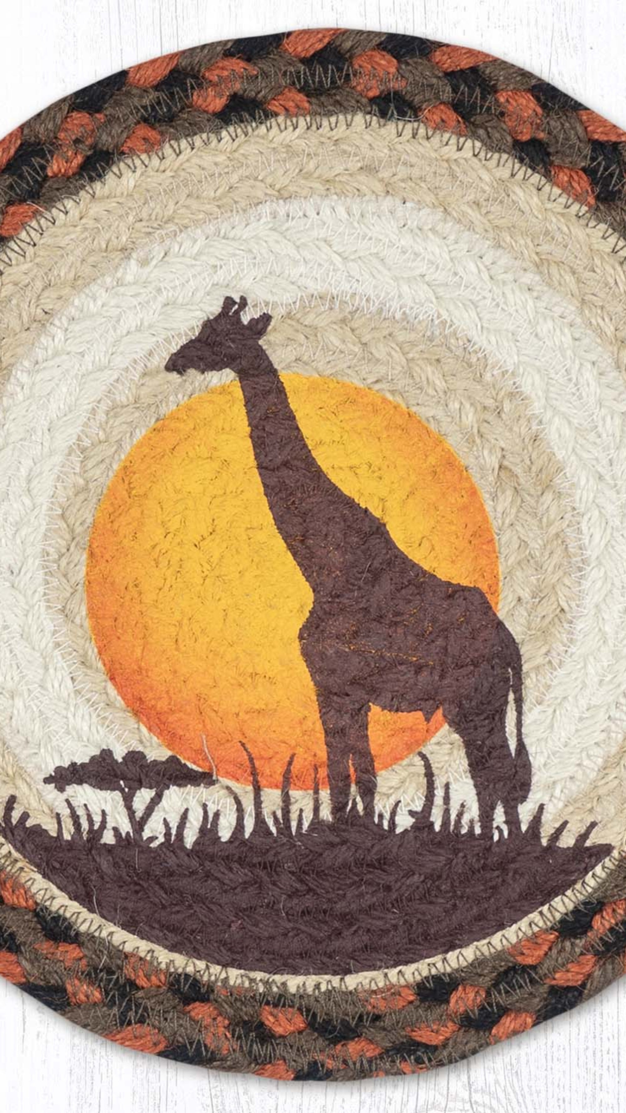SKU - ER80-919GGiraffe Printed Round Jute Trivet 10"x10" Safari Hot Pad